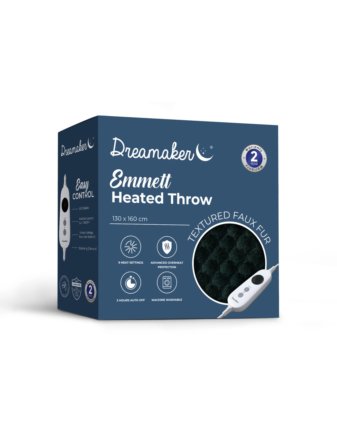 Dreamaker Emmett Textured Faux Fur Heated Throw 130x160cm - Deep Teal