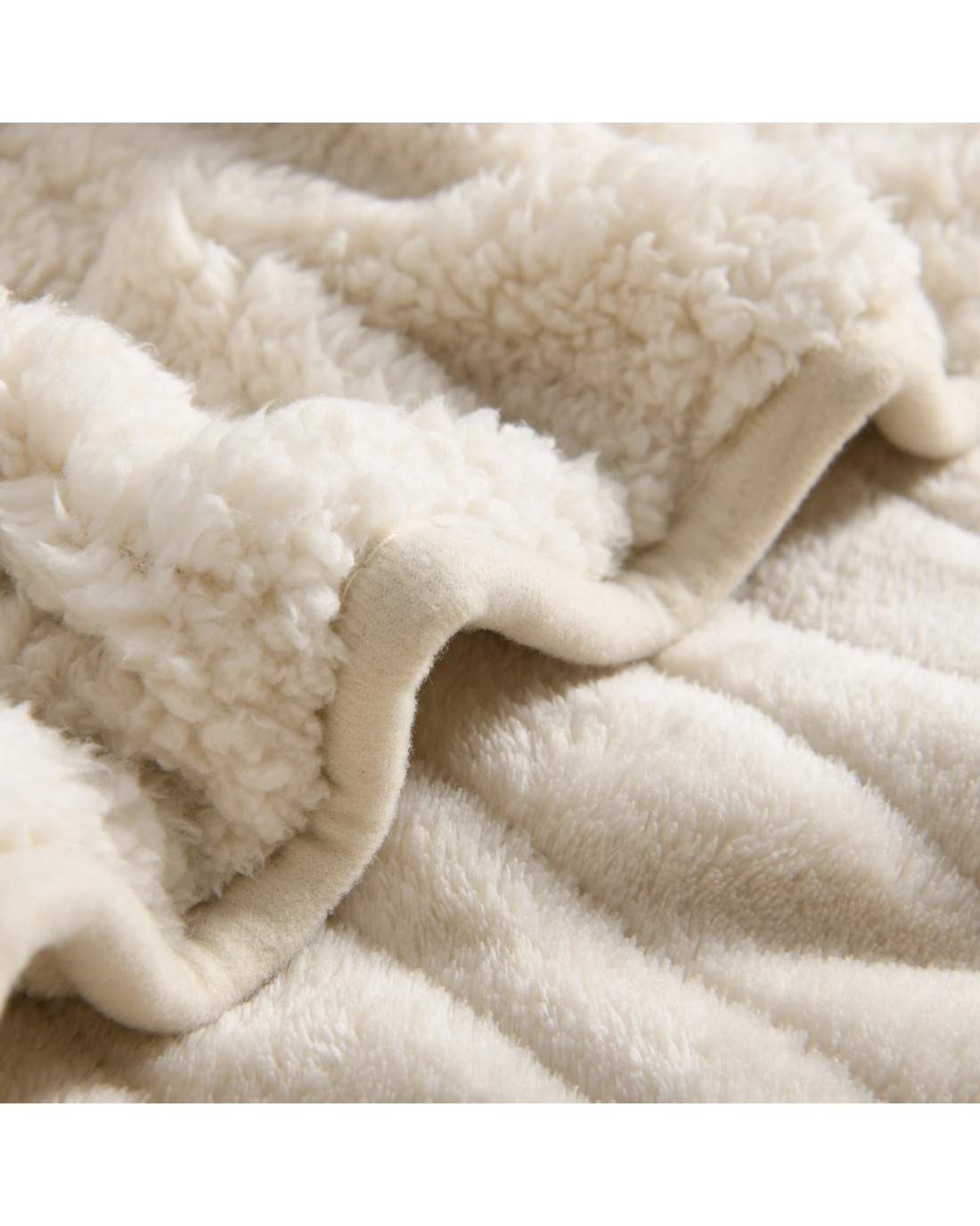 Dreamaker Eve Reversible Sherpa & Coral Fleece Heated Throw 130x160cm - Cream