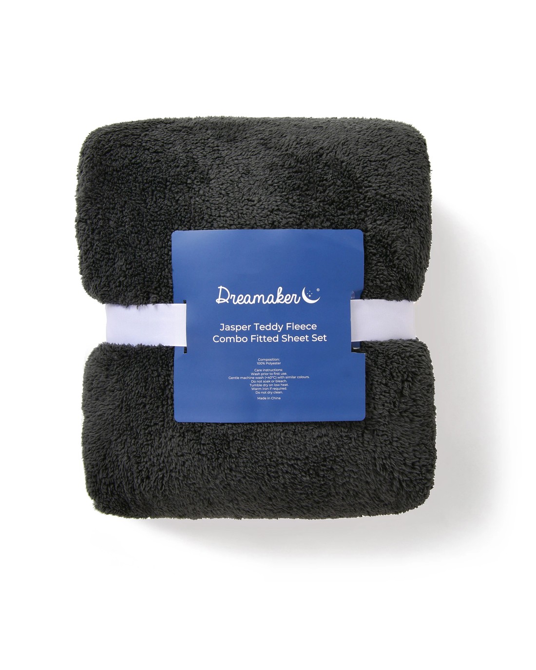 Dreamaker Jasper Teddy Fleece Combo Fitted Sheet Set - Double Bed - Charcoal