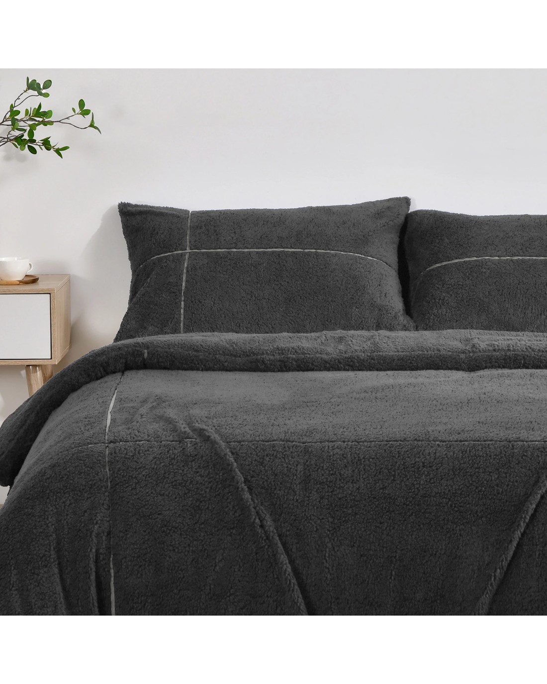 Sold by DI HomeDreamaker Jasper Teddy Fleece Quilt Cover Set - Single Bed - Charcoal