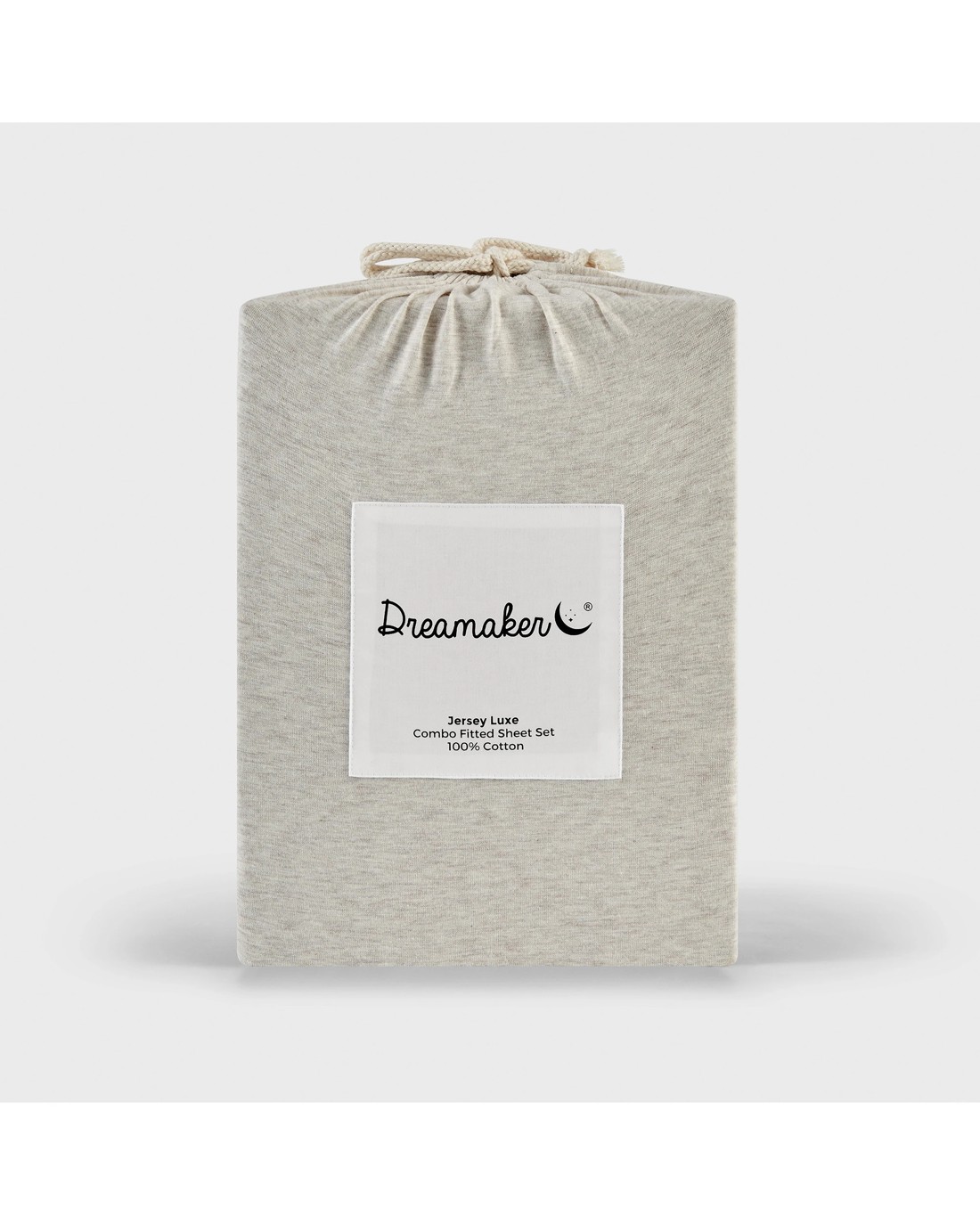 Dreamaker Jersey Luxe 100% Cotton Combo Fitted Sheet Set - Queen Bed - Oatmeal