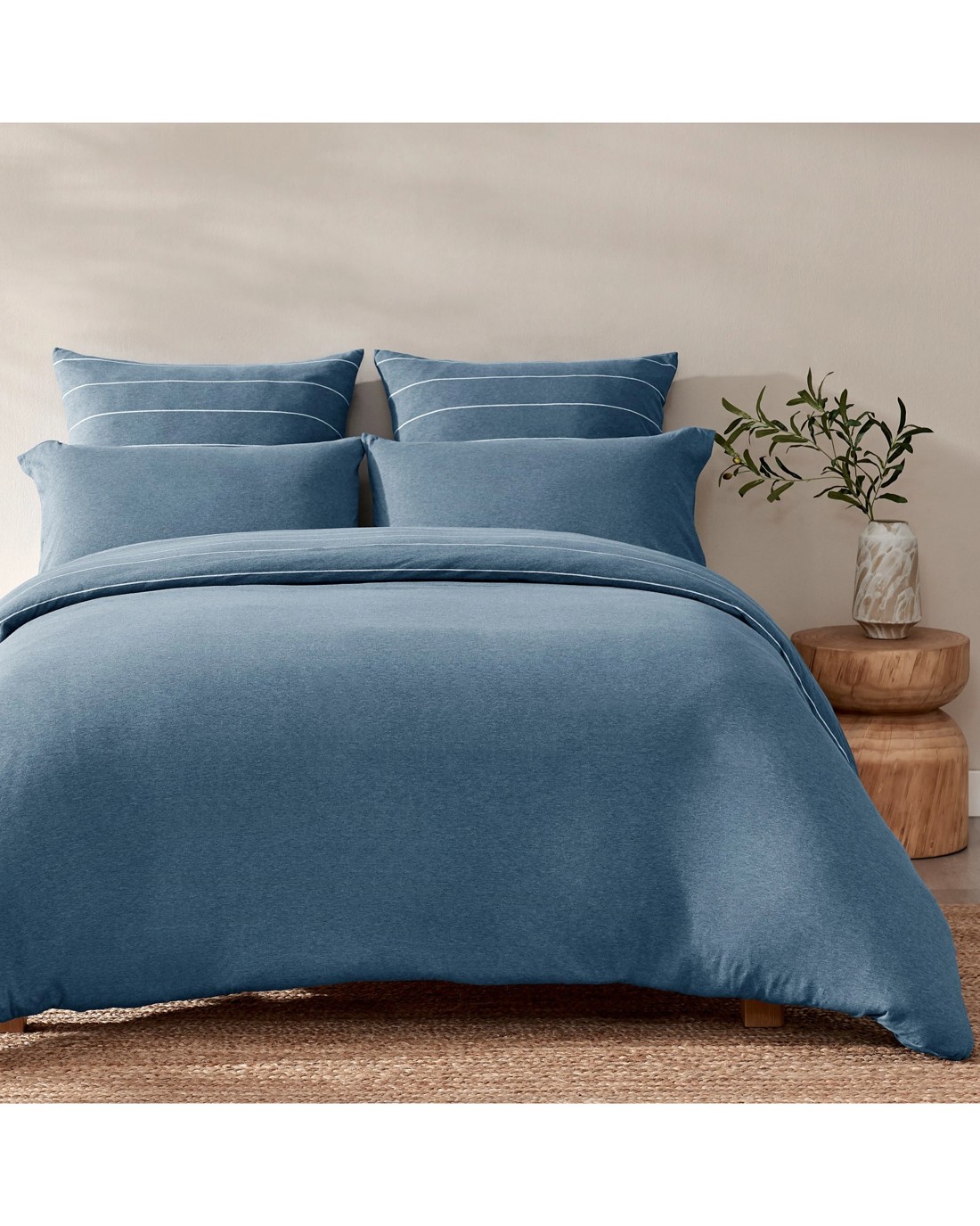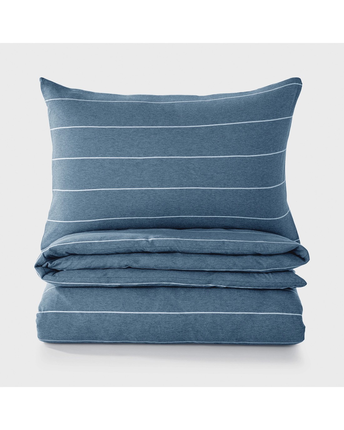 Two looks in one with the softness of your favourite t-shirt. Our Reversible Jersey Luxe Quilt Cover Sets are crafted from 100% cotton jersey in a beautiful, marled knit with a striped design. Our cotton jersey breathes and adapts to your body temperature comfortably as you sleep and its natural stretch hugs your bedding for a smoother wrinkle-free finish.