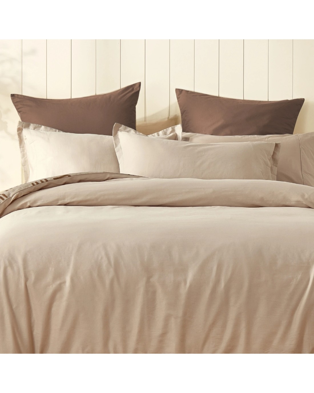 Dreamaker Kaya 100% Cotton Reversible Quilt Cover Set - Double Bed - Beige