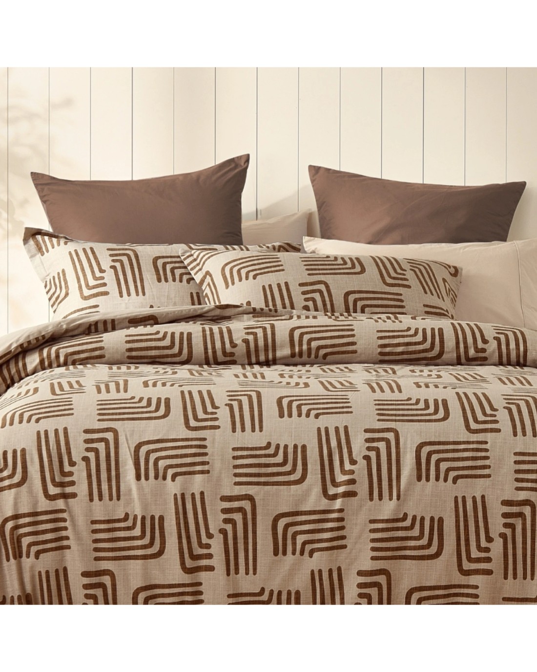 Enjoy the warm tones of our Kaya reversible cotton quilt cover set - featuring an earthy geometric design paired with a soft neutral reverse. Made of breathable, 100% cotton, Dreamaker's reversible printed quilt cover sets have two unique prints on both sides of the quilt cover and matching pillowcases, giving you two styles in one.
