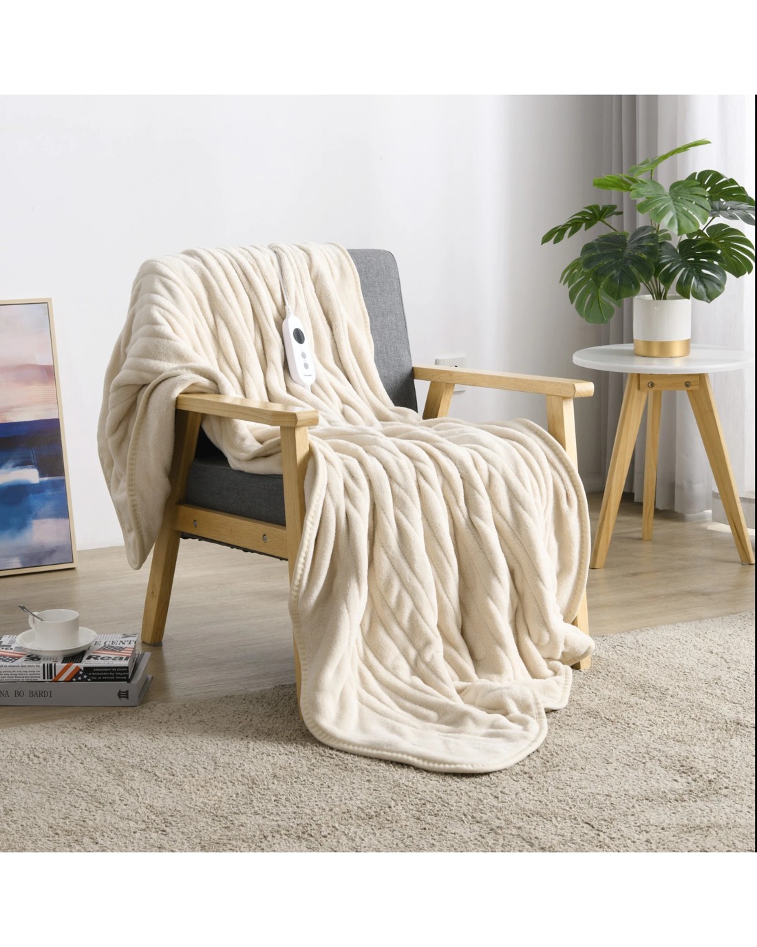 The user-friendly heating controller lets you adjust the temperature to your personal comfort level. Simply heat up on the fast heat setting (H) and then adjust from 1-8 once you reach your desired warmth. For your peace of mind, it will turn off after 3 hours. The double layered fleece keeps the heat trapped for longer, saving you energy. To use it as a regular throw, just detach the controller cord.