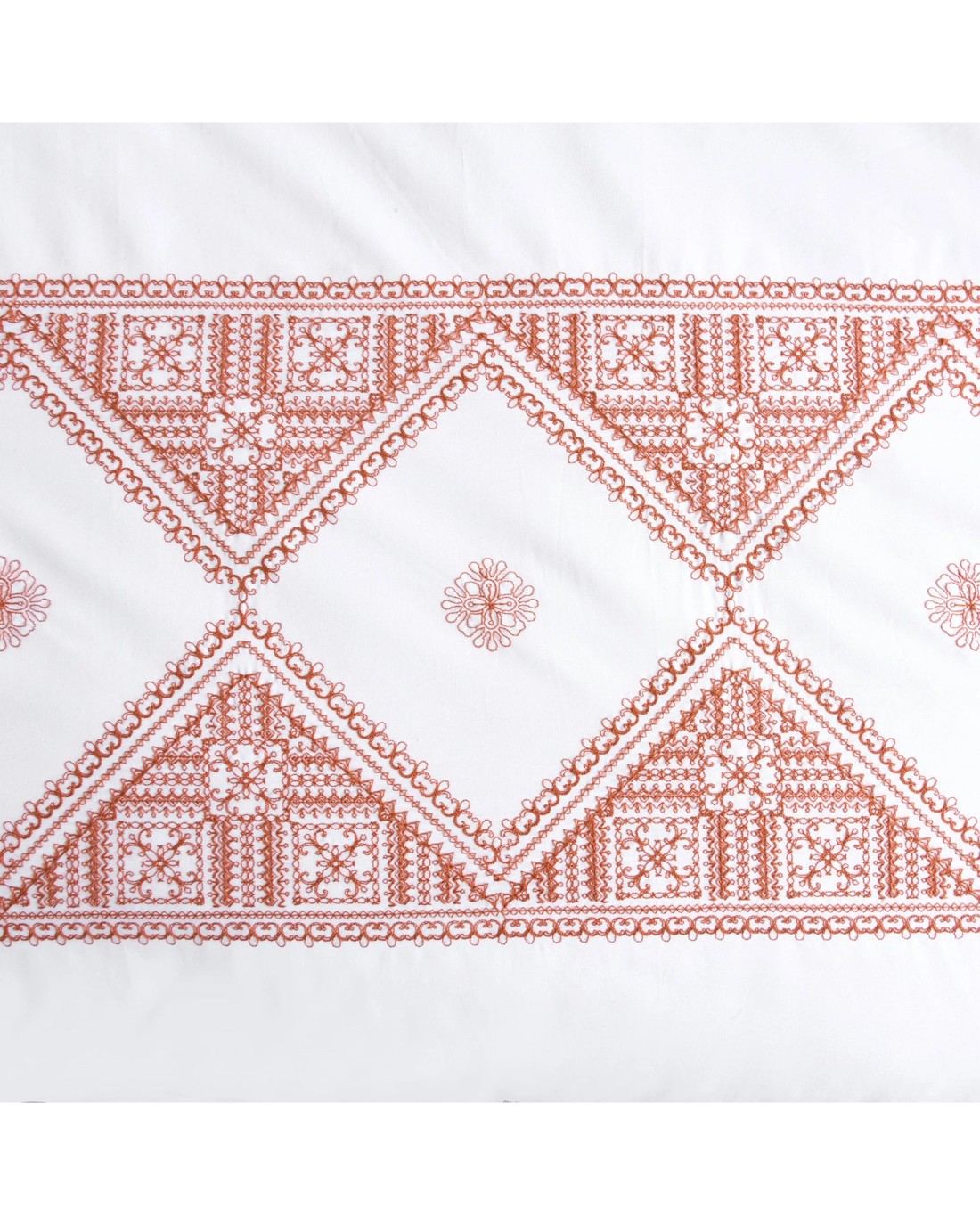 - White with rust embroidery and tassels