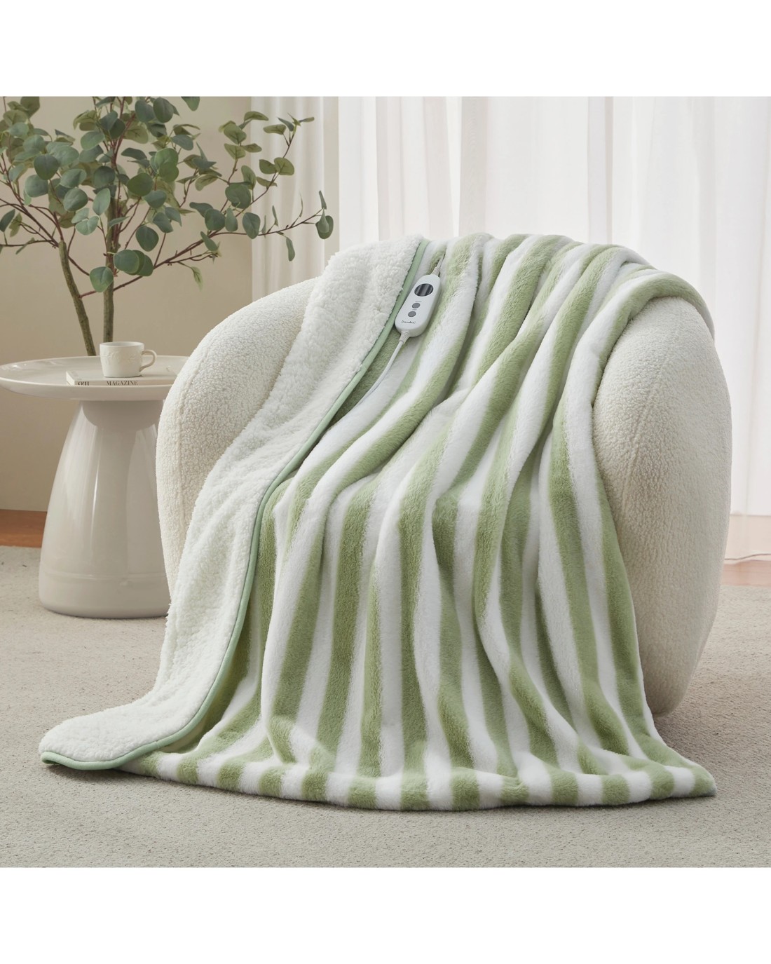 Dreamaker Linea Faux Fur Heated Throw 130x160cm - Olive