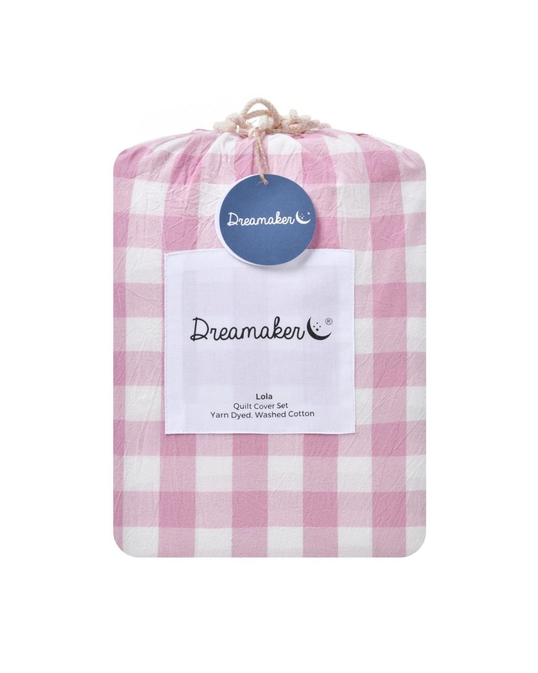 Dreamaker Lola Yarn Dyed Washed Cotton Gingham Quilt Cover Set - King Bed - Pearl Pink