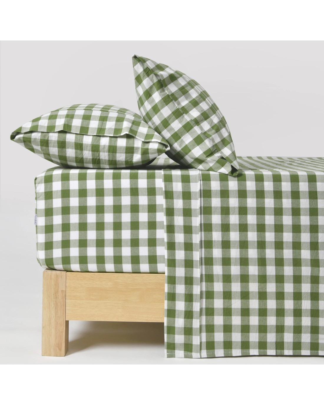 Dreamaker Lola Yarn Dyed Washed Cotton Gingham Sheet Set - Double Bed - Olive