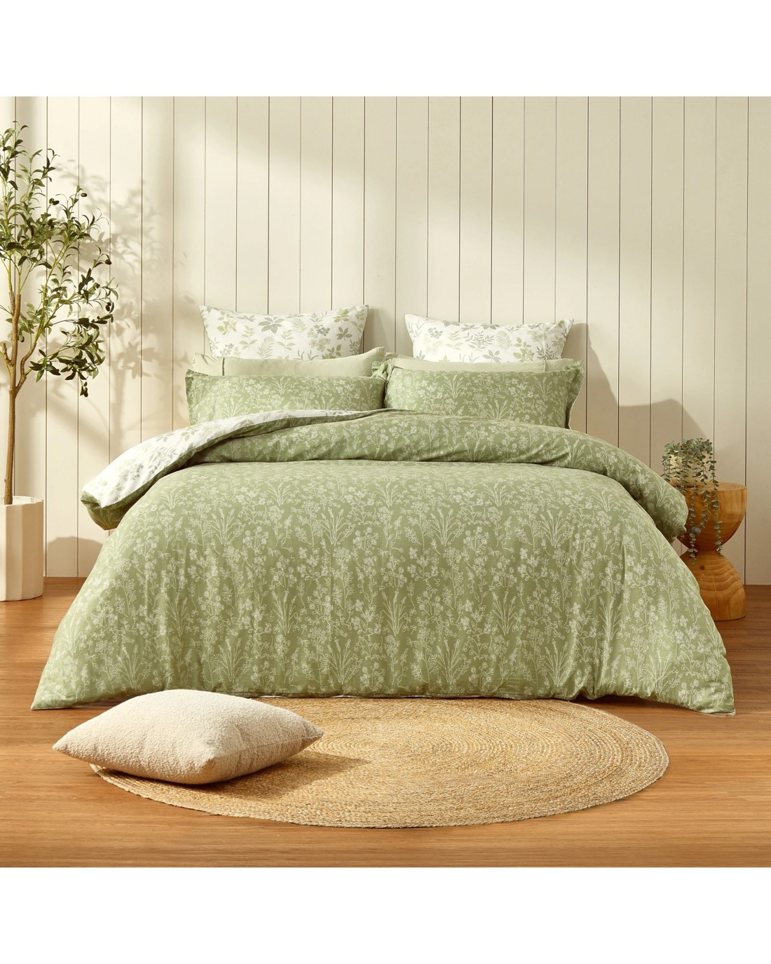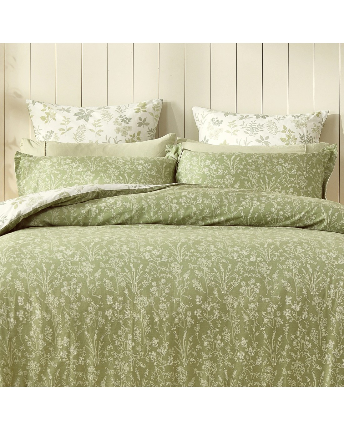 Dreamaker Mabel 100% Cotton Reversible Quilt Cover Set - Single Bed - Sage Green