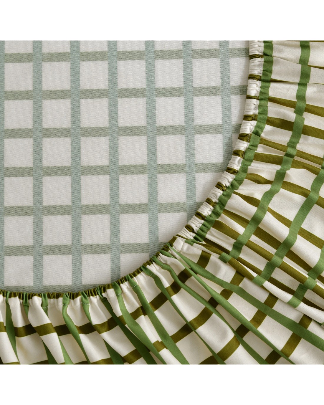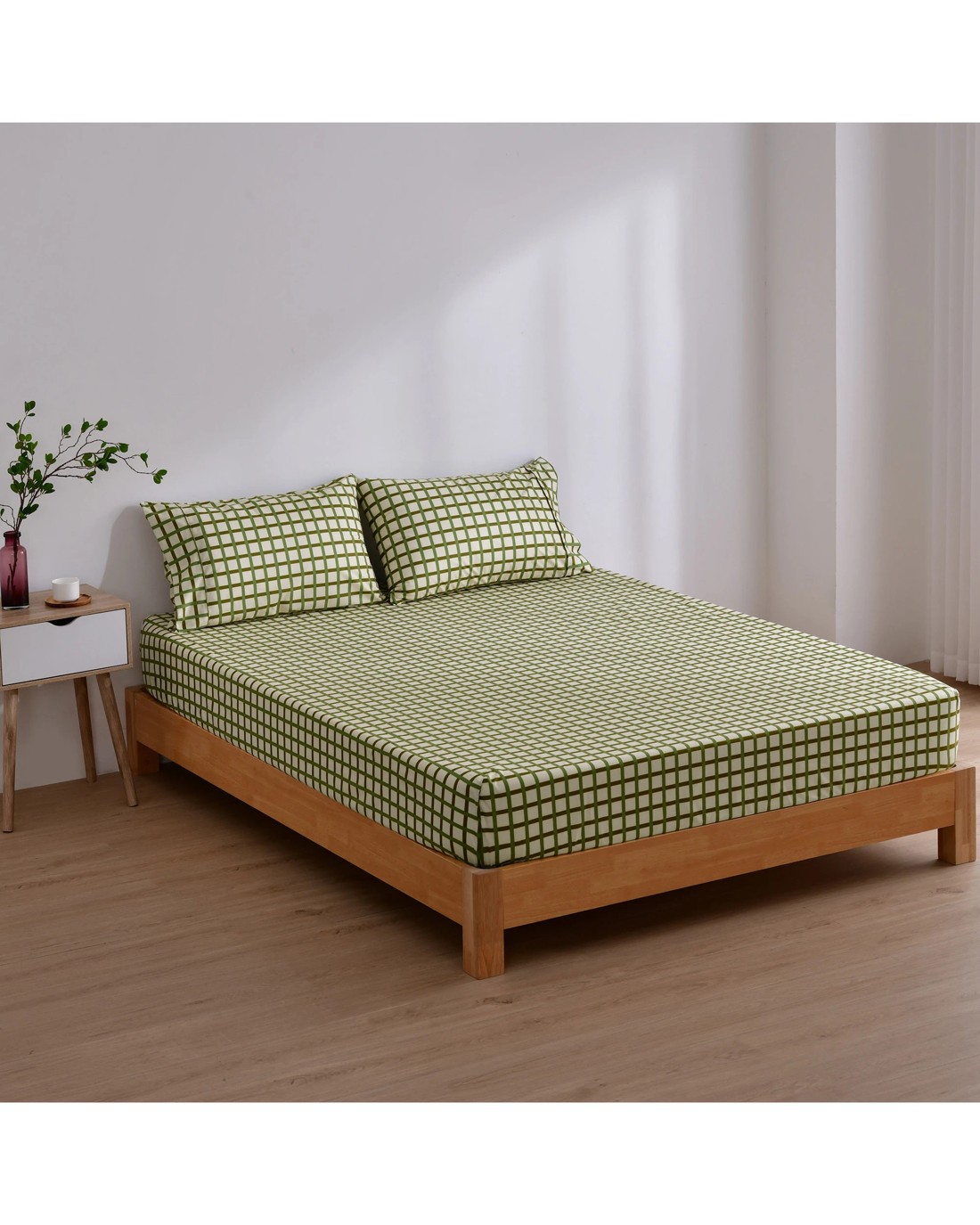Dreamaker Micro Flannel Grid Combo Fitted Sheet Set - King Single Bed - Olive