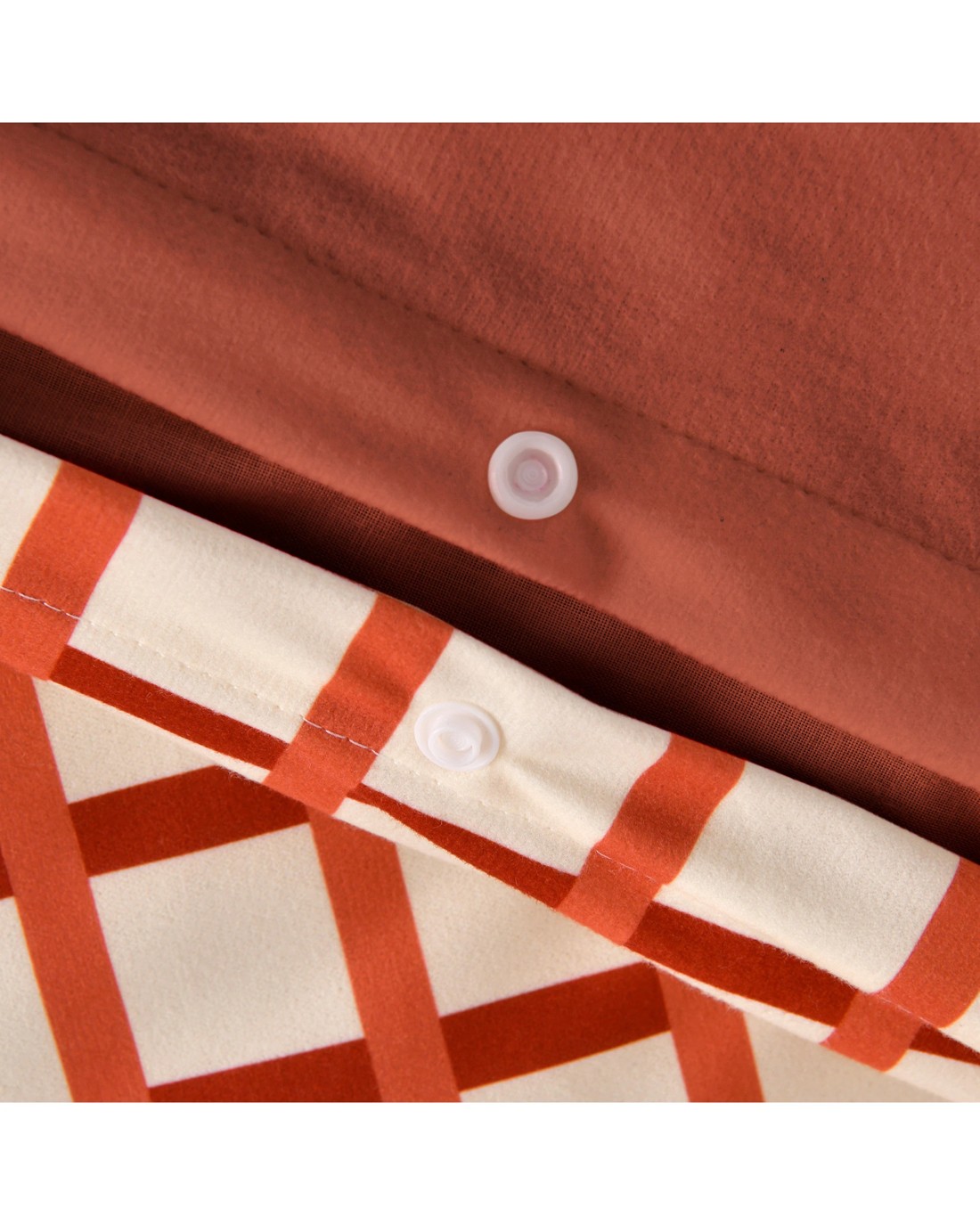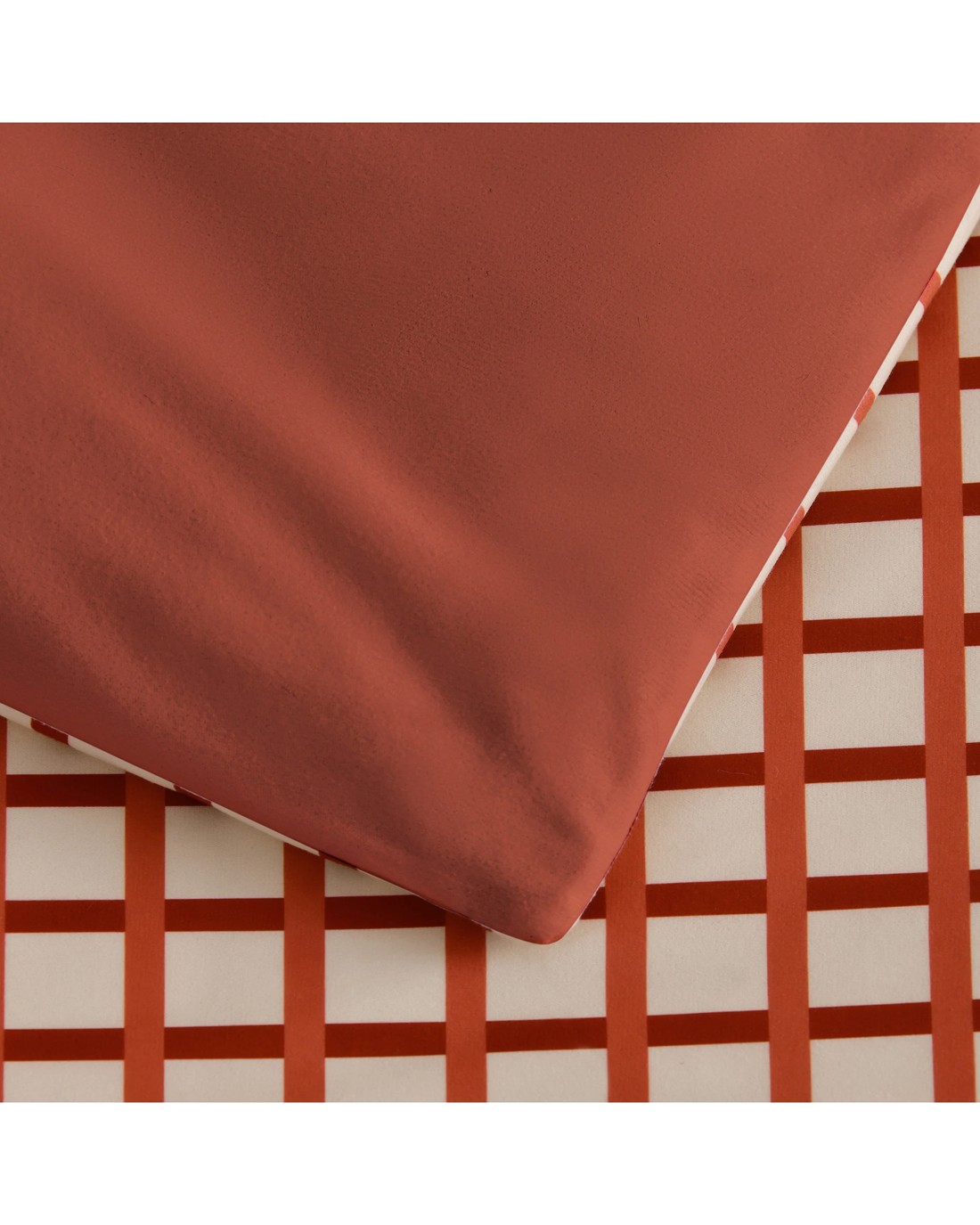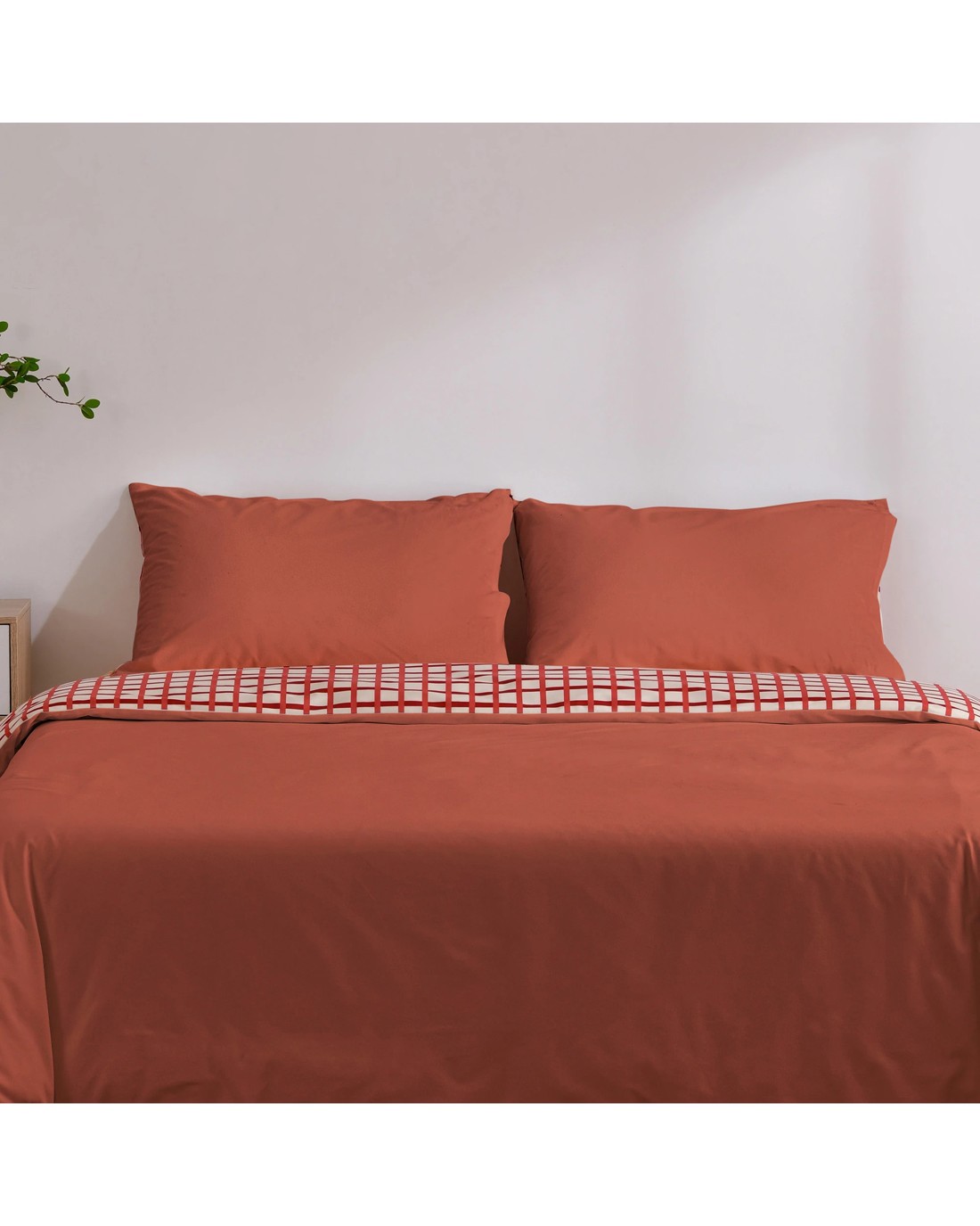 Dreamaker Micro Flannel Reversible Grid Quilt Cover Set - Queen Bed - Sienna