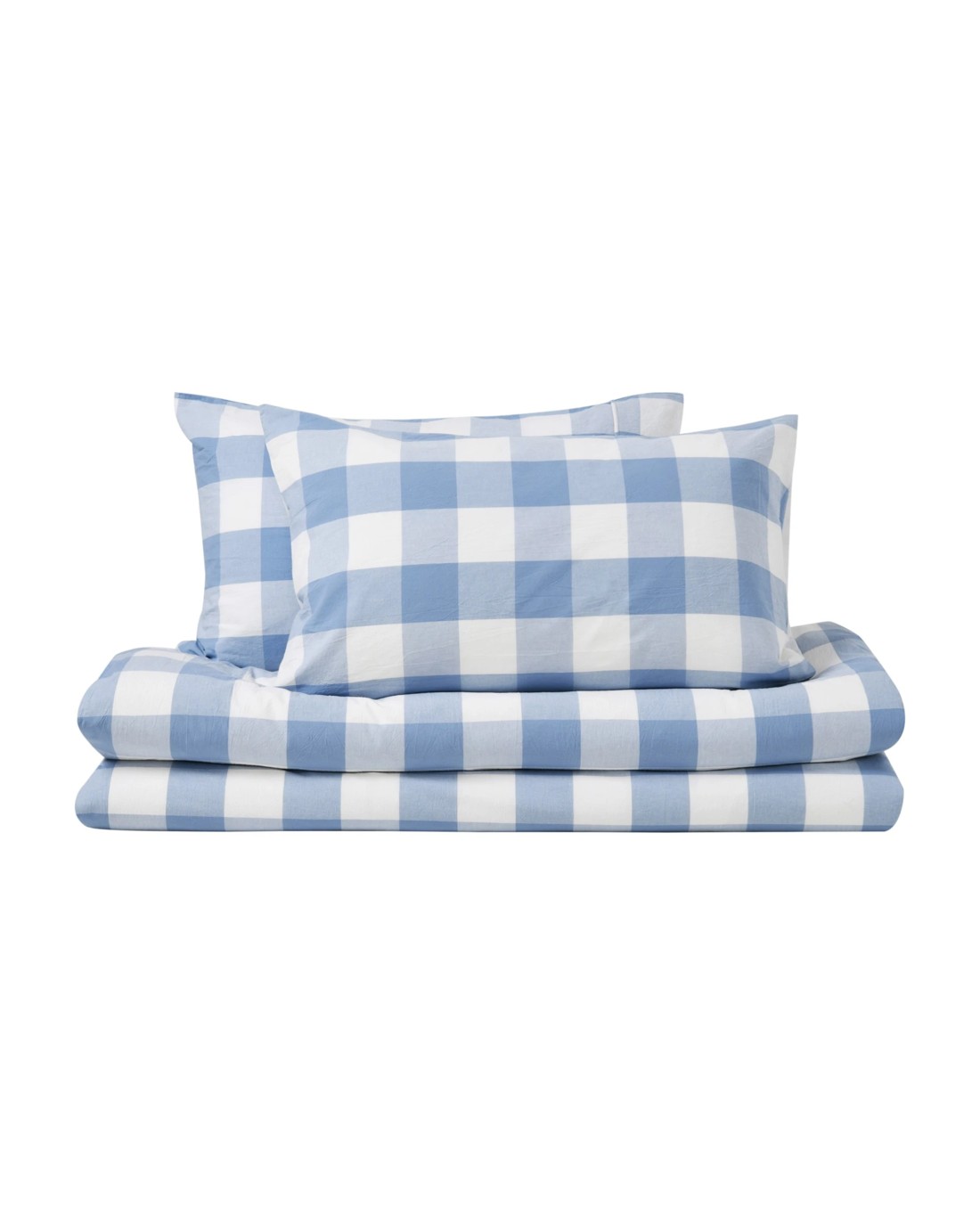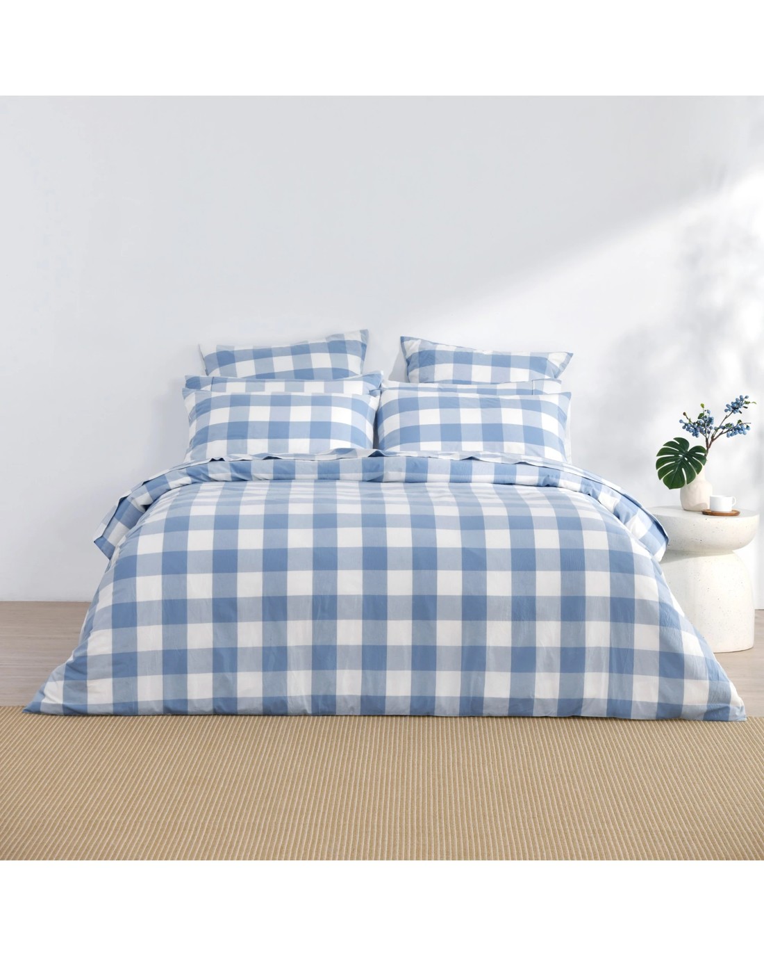Dreamaker Remy Yarn Dyed Washed Cotton Checkered Quilted Cover Set - Double Bed - Cornflower