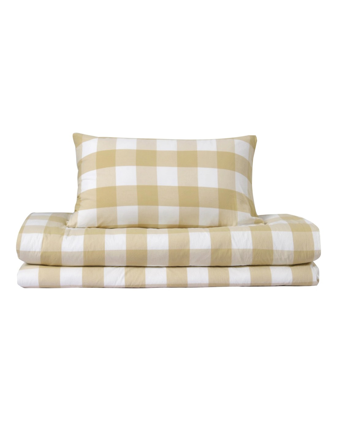 Dreamaker Remy Yarn Dyed Washed Cotton Checkered Quilted Cover Set - King Single Bed - Sand