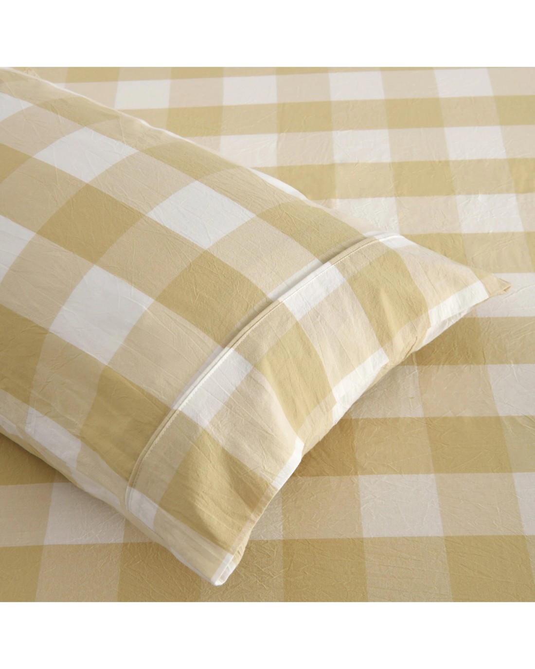 Sold by DI HomeDreamaker Remy Yarn Dyed Washed Cotton Checkered Sheet Set - Super King Bed - Sand