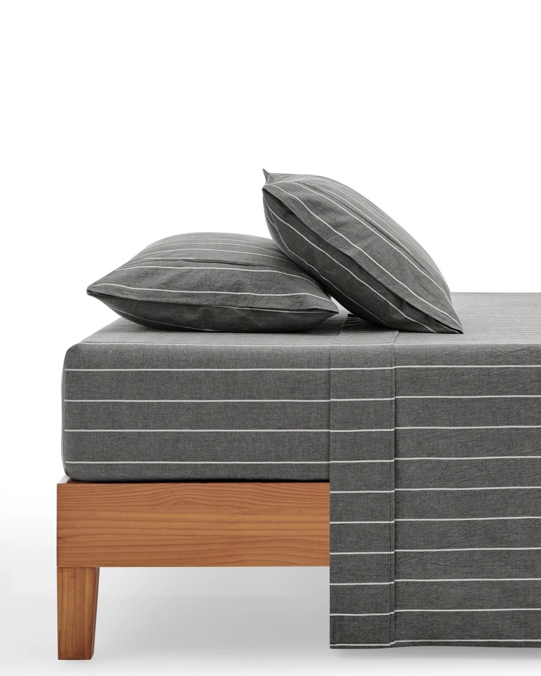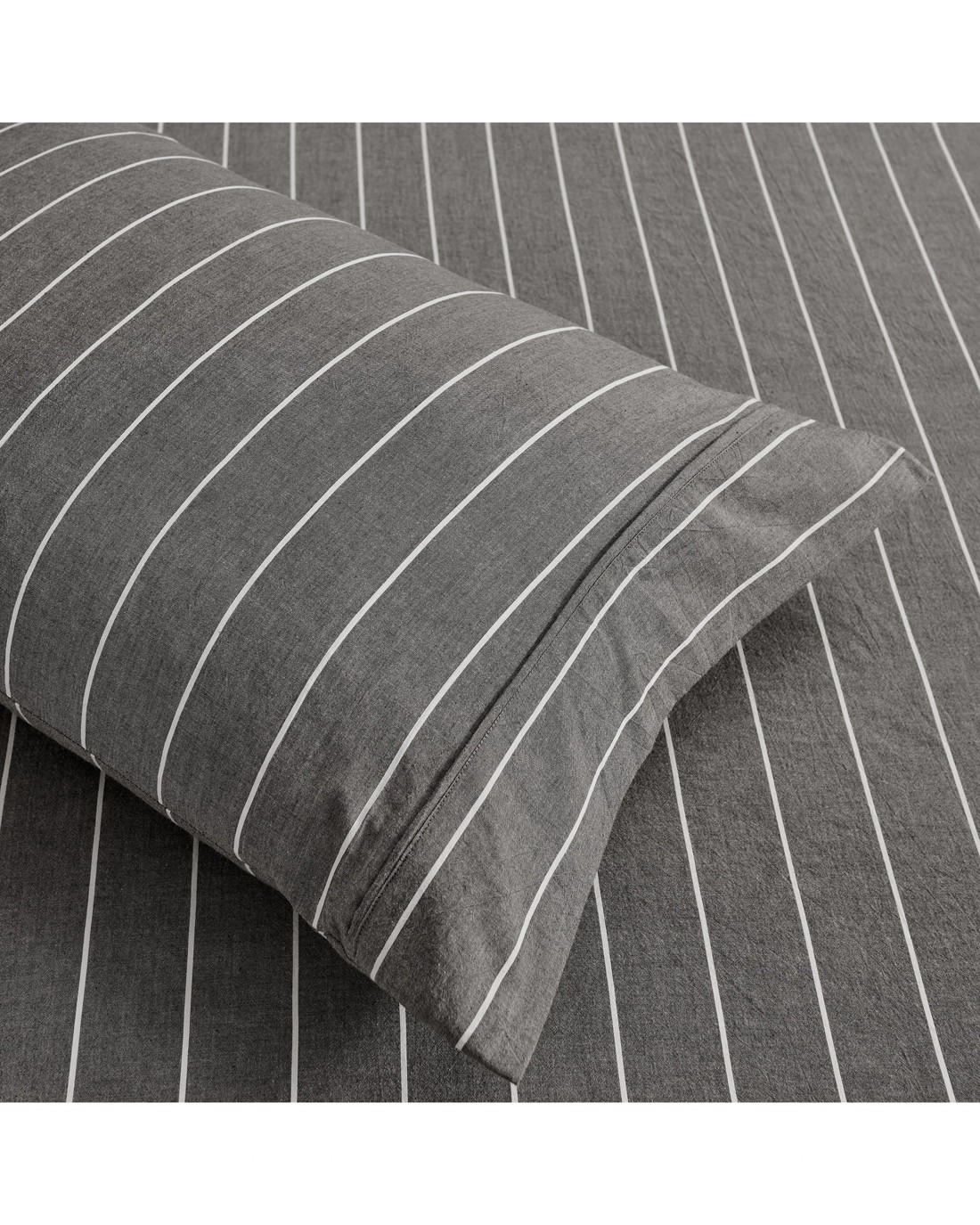 Dreamaker Rumi Stripe Washed Cotton Sheet Set - King Bed - Graphite with White