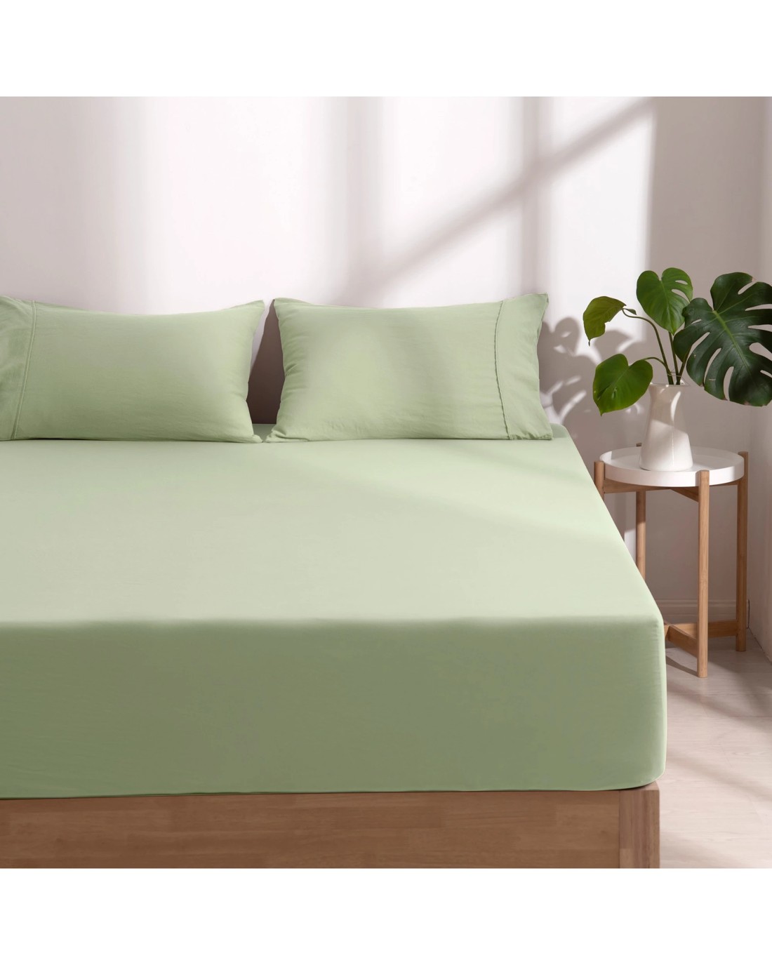 Dreamaker Superfine Washed Microfibre Combo Fitted Sheet Set - King Bed - Sage Green