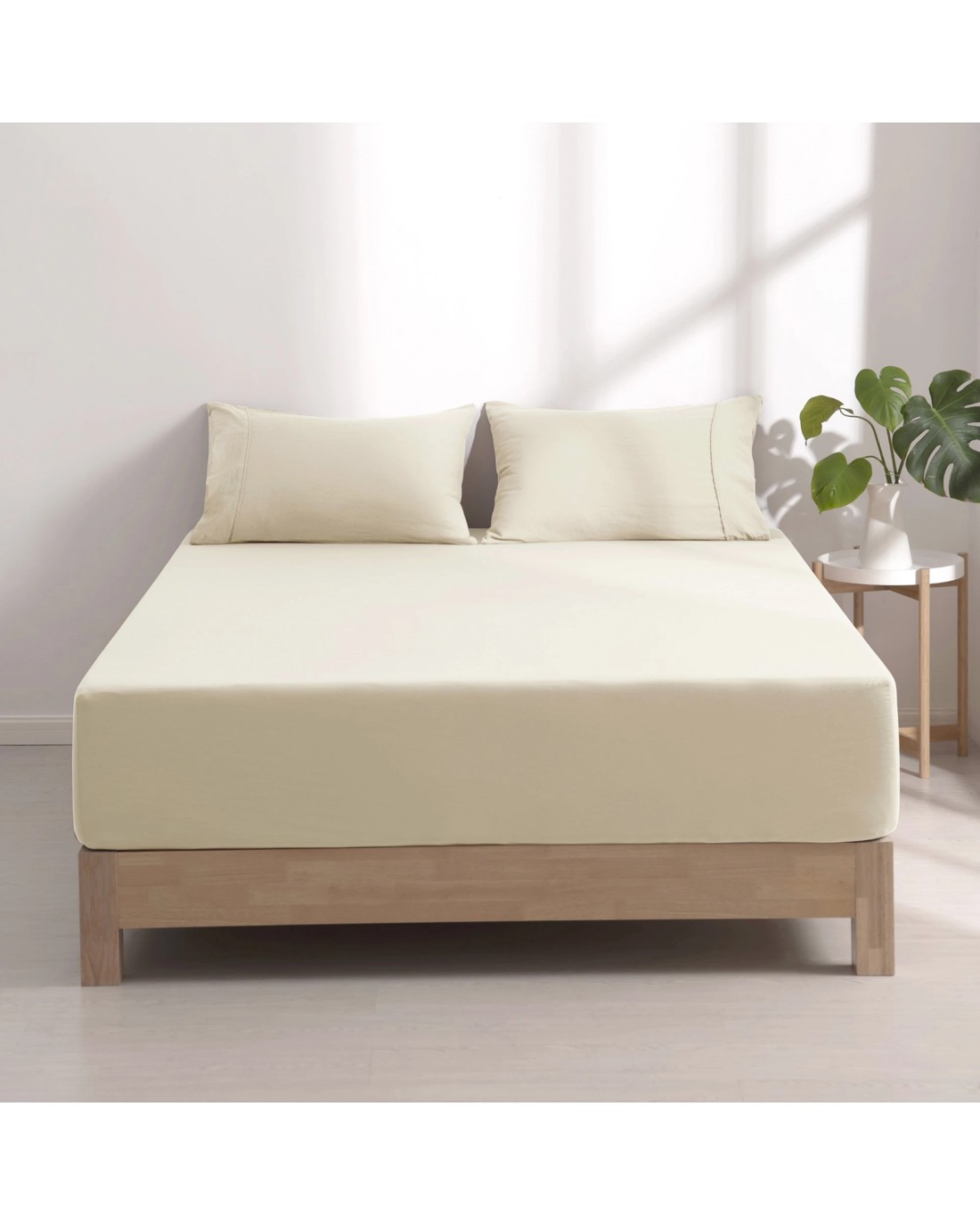 Dreamaker Superfine Washed Microfibre Combo Fitted Sheet Set - King Single Bed - Natural