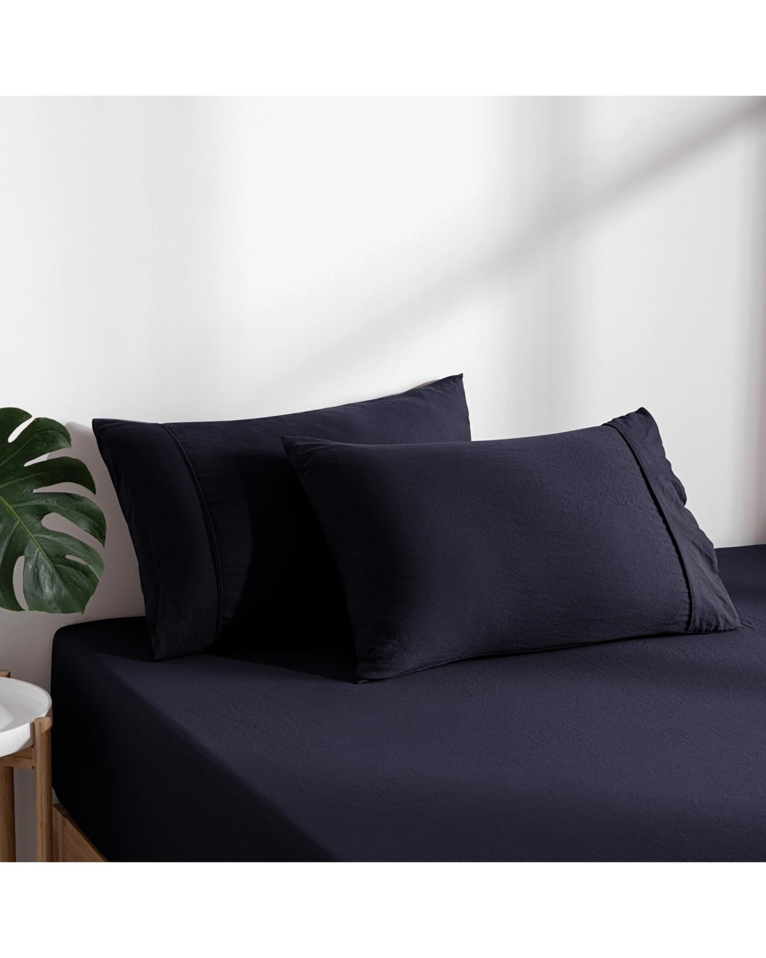 Sold by DI HomeDreamaker Superfine Washed Microfibre Combo Fitted Sheet Set - Queen Bed - Navy