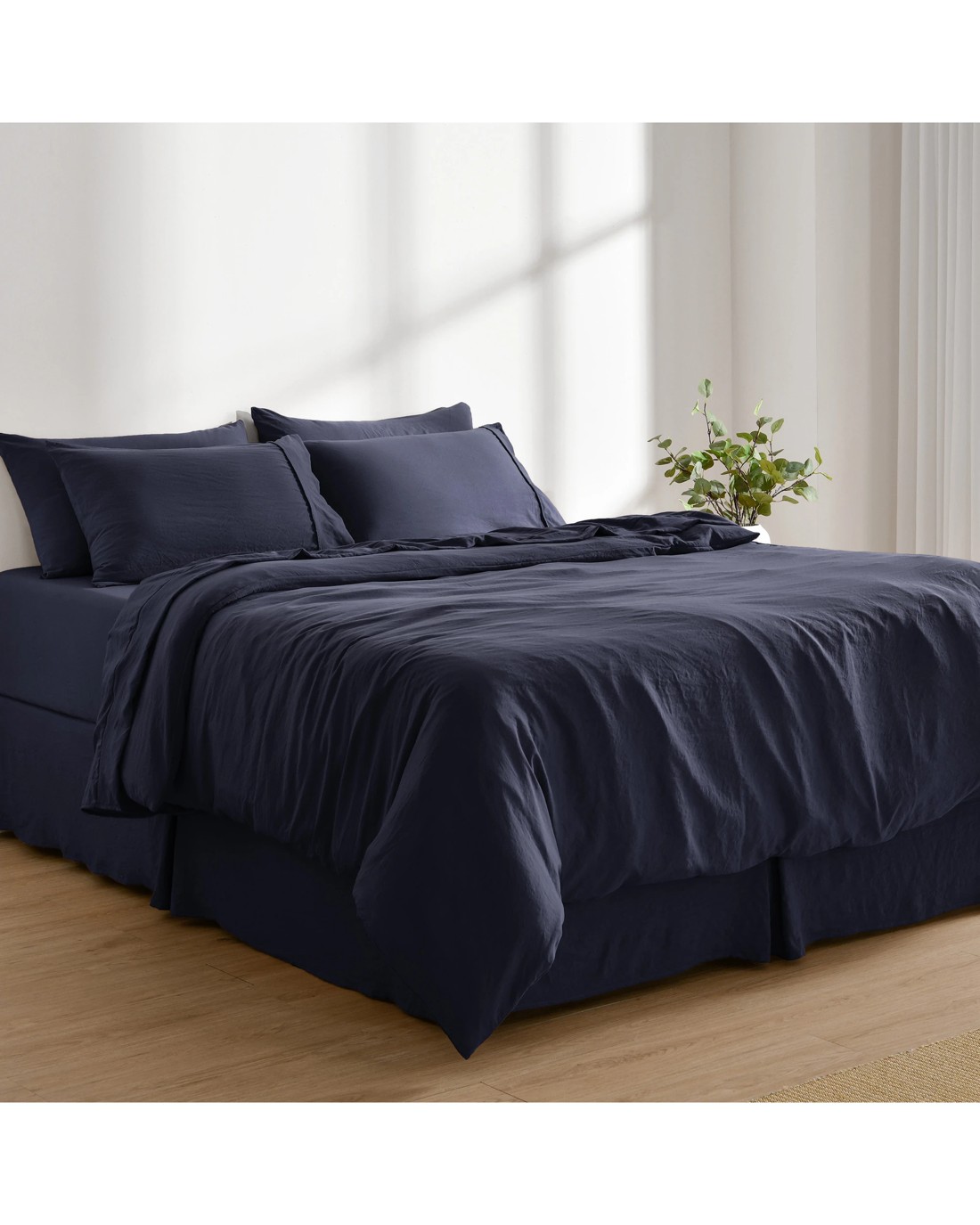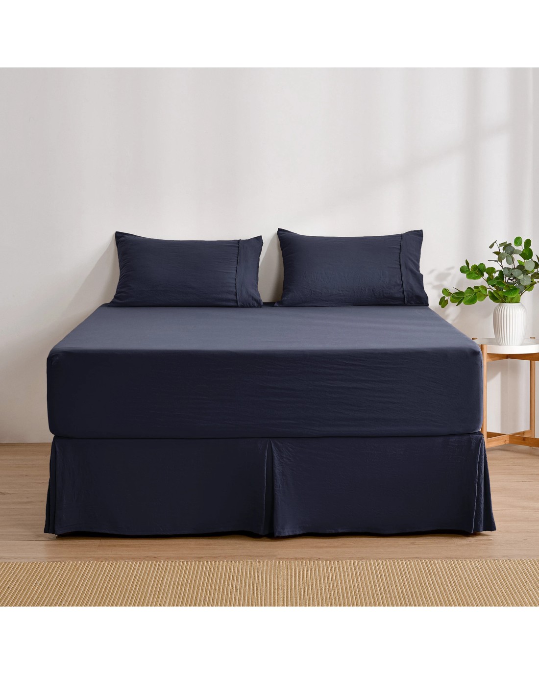 Dreamaker Superfine Washed Microfibre Pleated Valance - Double Bed - Navy