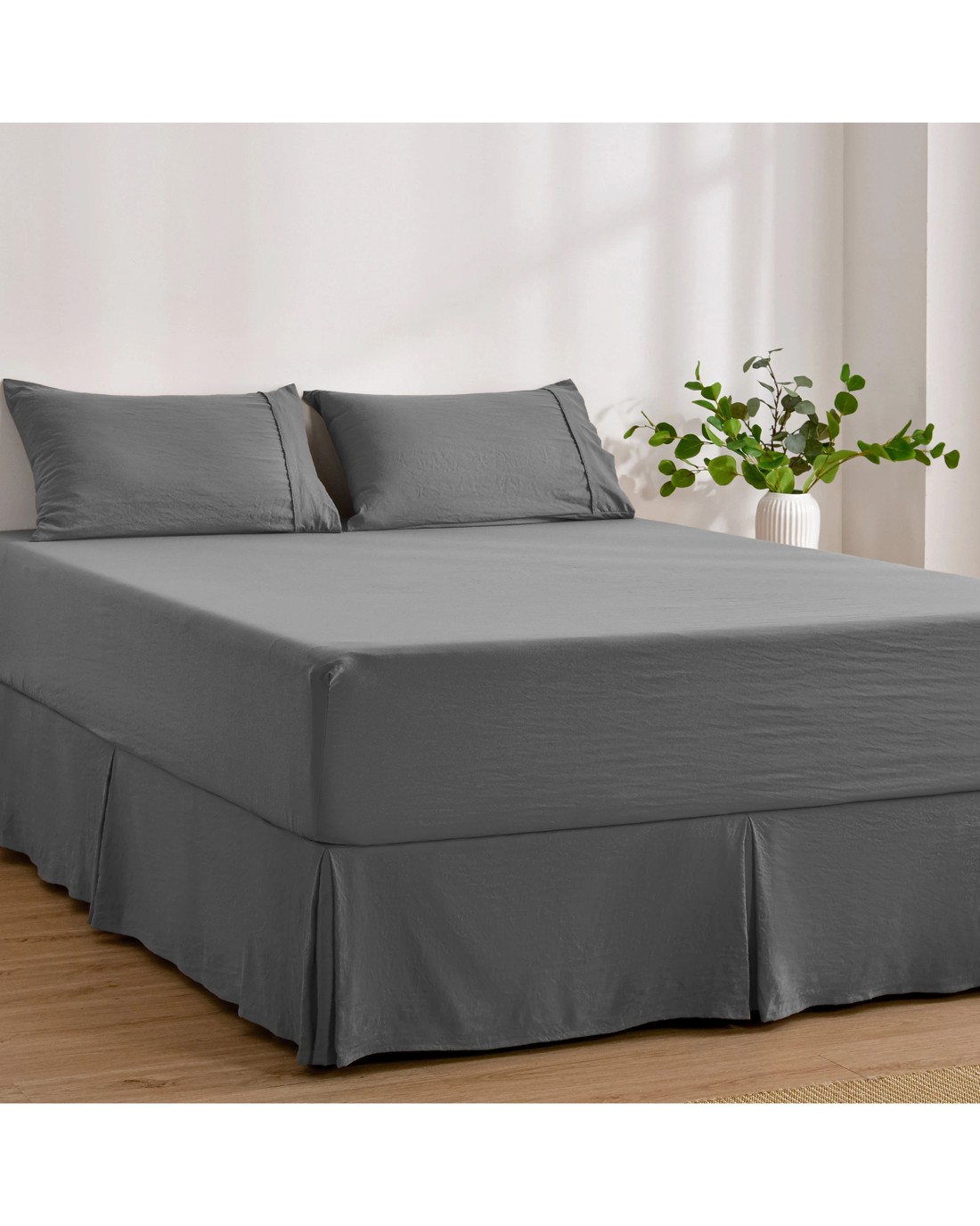 Dreamaker Superfine Washed Microfibre Pleated Valance - King Single Bed - Charcoal