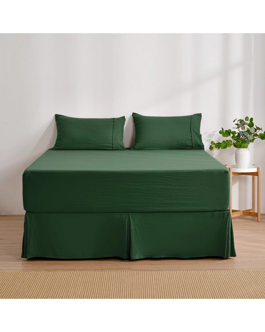 Dreamaker Superfine Washed Microfibre Pleated Valance - King Single Bed - Hunter Green