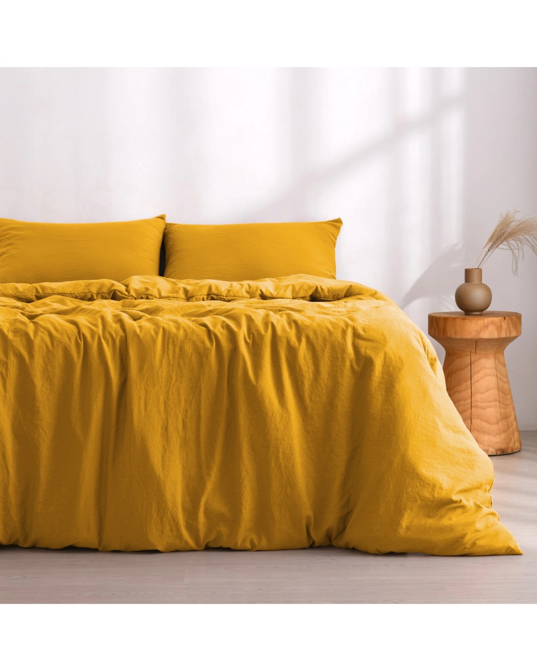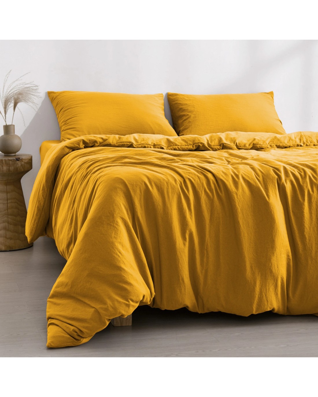 Dreamaker Superfine Washed Microfibre Quilt Cover Set - Single Bed - Mustard