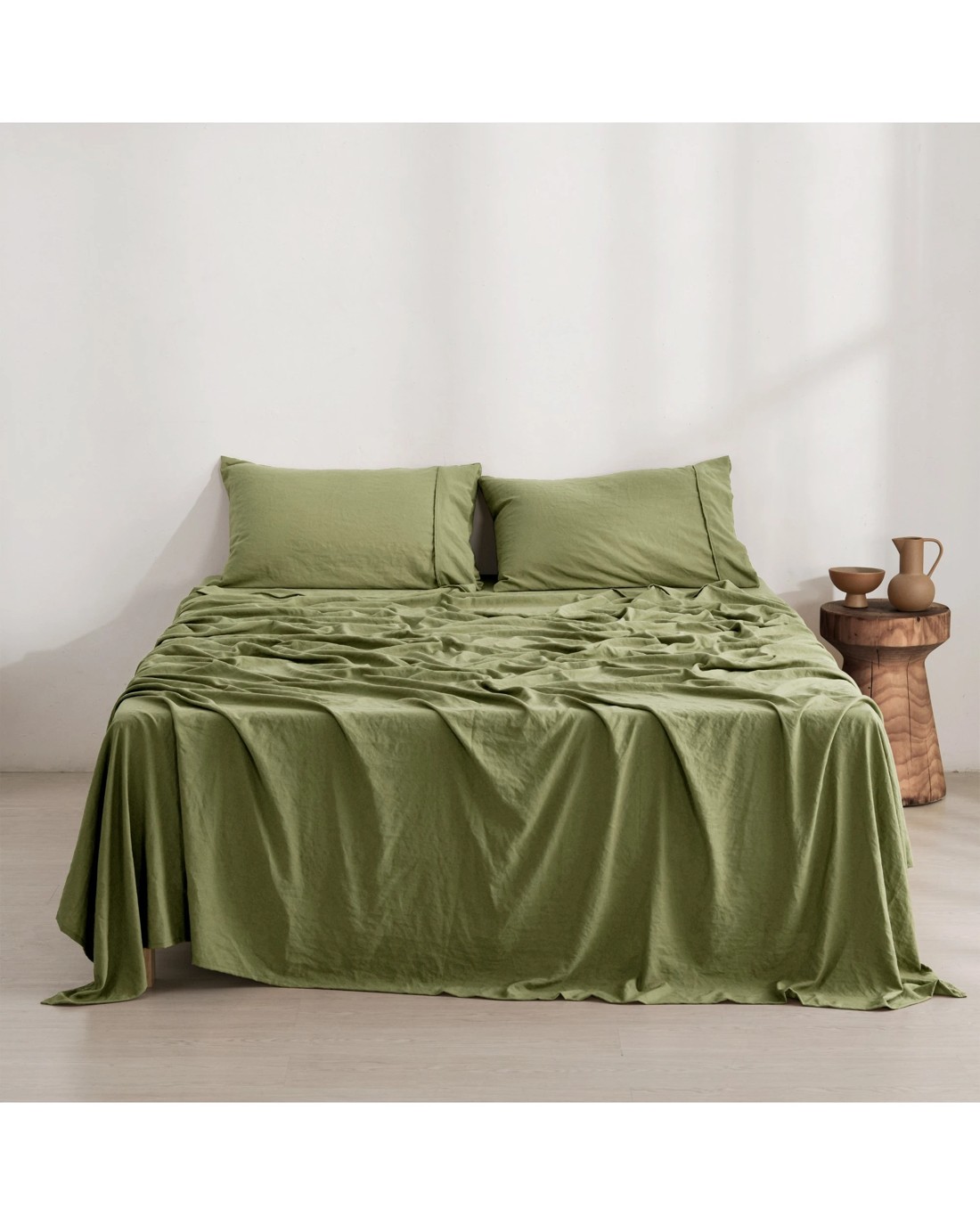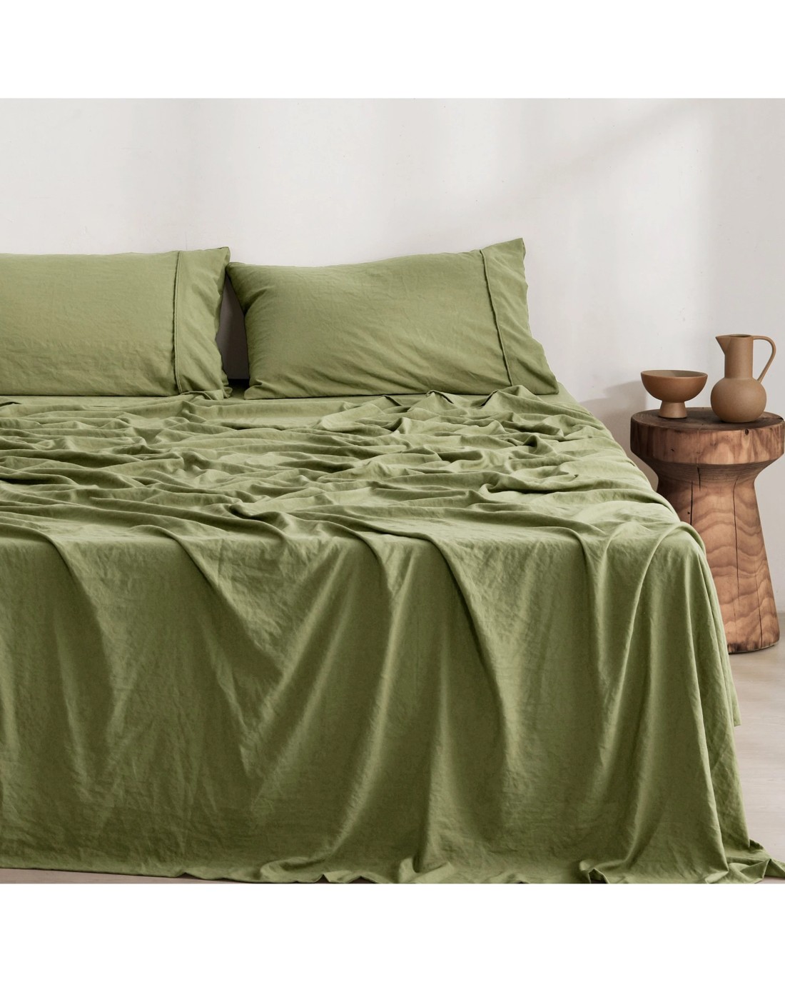 Dreamaker Superfine Washed Microfibre Sheet Set - King Bed - Olive