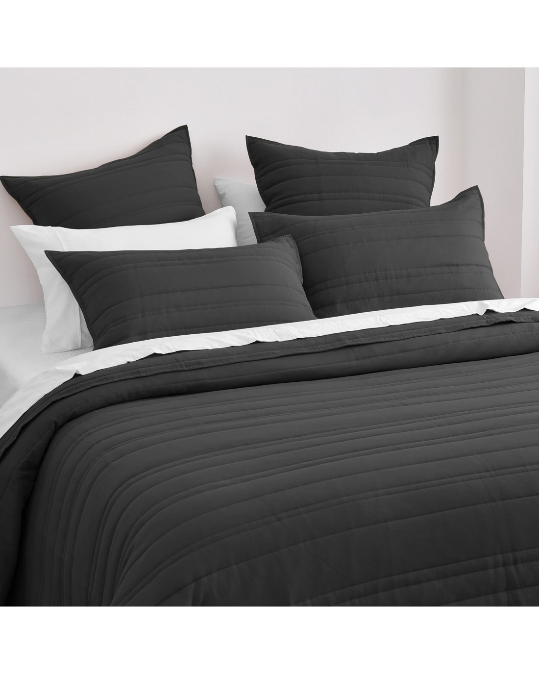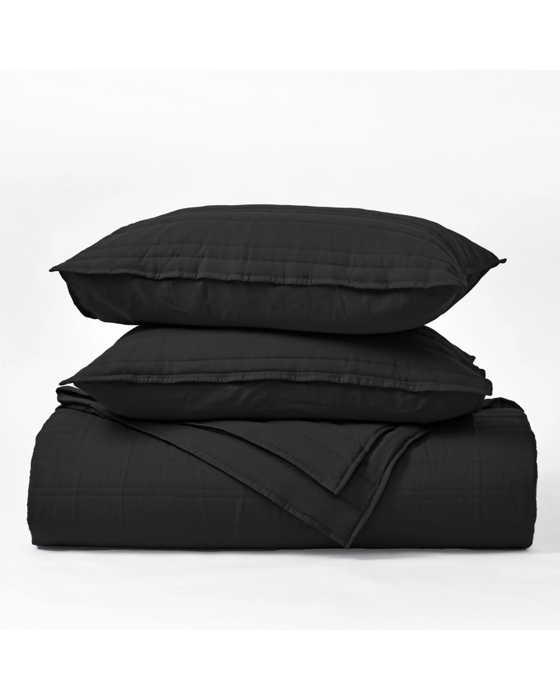 Dreamaker Superfine Washed Microfibre Stripe Quilted Coverlet Set - Queen/King - Black