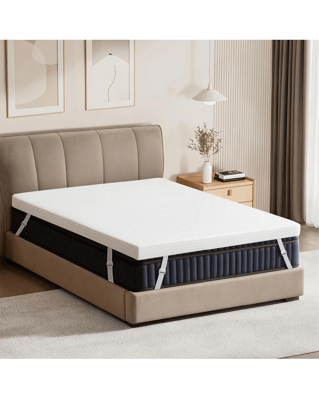 Wrapped in a soft, breathable knitted cover, this memory foam mattress topper is designed for everyday practicality. The zip-off cover is fully removable and machine washable, making it easy to keep your bed topper clean and comfortable. A non-slip base combined with adjustable corner straps ensures the topper stays securely in place without shifting, even if you move during sleep.