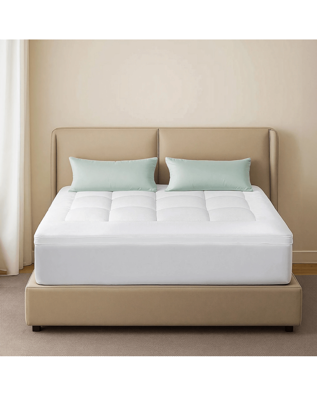 Crafted from premium bamboo-blend fabric, this topper is naturally breathable, antibacterial, and moisture-wicking, helping regulate temperature for a more restful night. The fitted skirt keeps the topper securely in place, while the entire unit is machine washable for easy care.