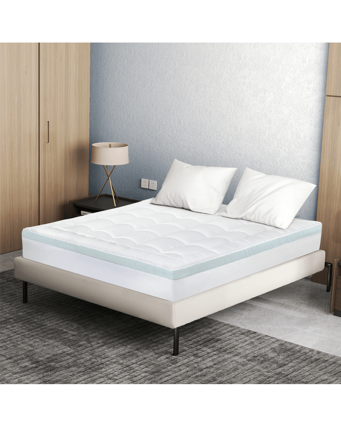 Upgrade your sleep with the Dreamz Gel Memory Foam Mattress Topper, designed for superior comfort and support. Made with 30D blue gel memory foam, this mattress pad offers excellent pressure relief and contours perfectly to your body, promoting proper spinal support. Unlike traditional fiber pads, the high-resilience foam is durable, non-sagging, and long-lasting.