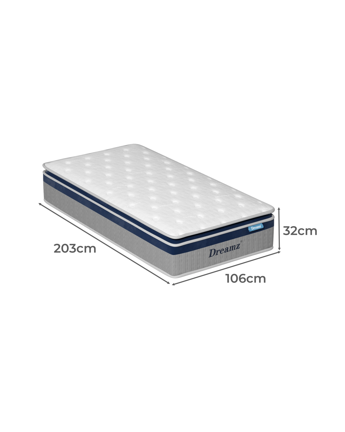 King Single: 203cm x 106cm x 32cm