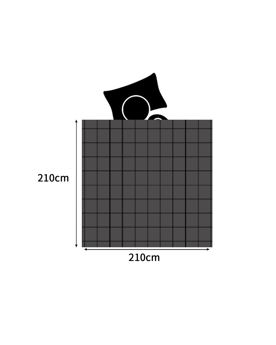 Dimensions (queen): 210cm x 210cm