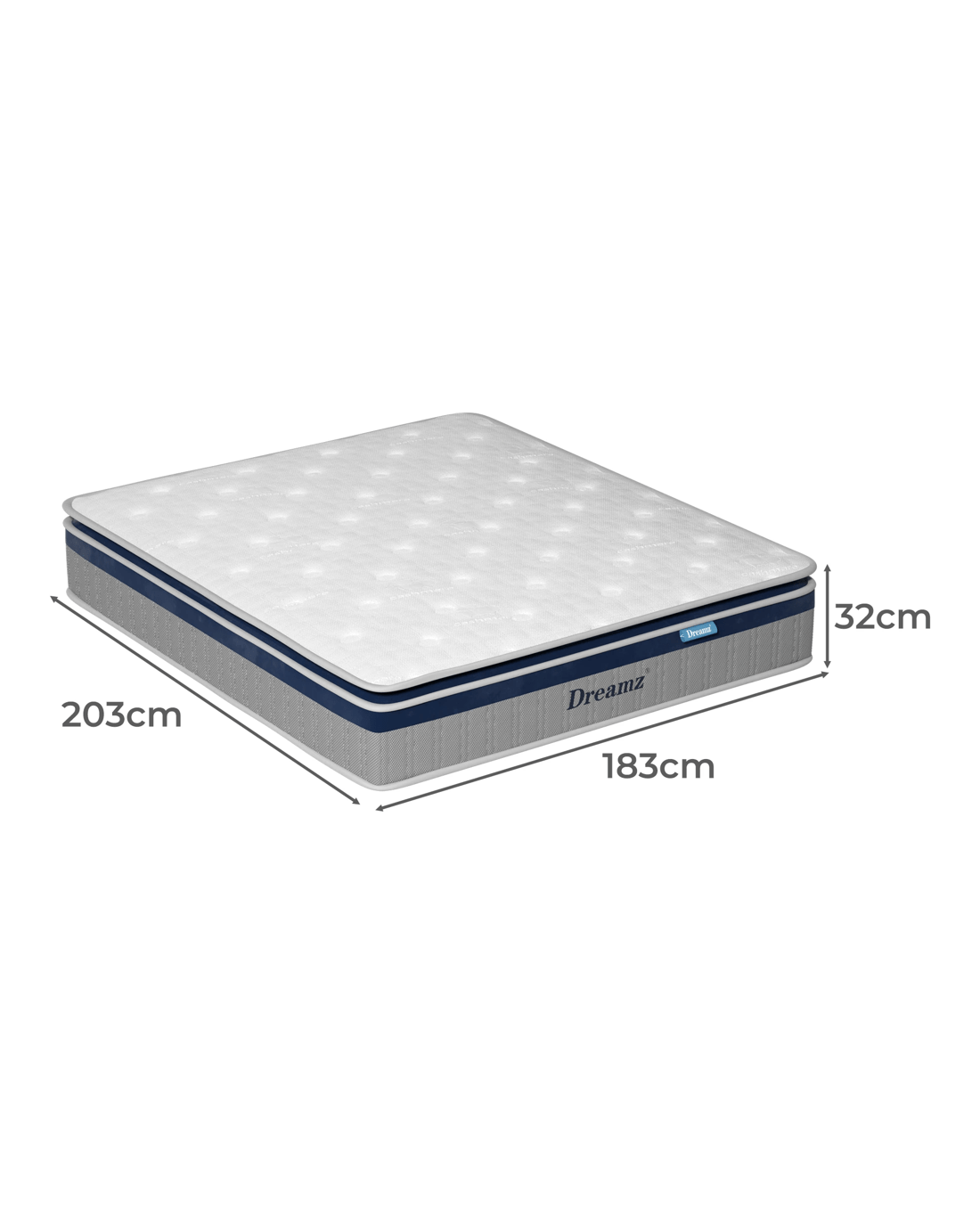 Sold by Sello ProductsDreamZ Spring Mattress Pillow Top 7 Zone Pocket Spring Memory Foam 32cm King