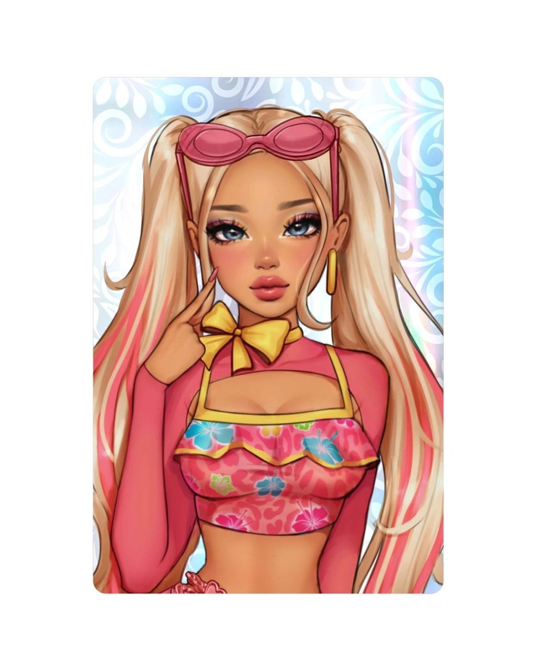 Step into the spotlight with the Dress To Impress Fashion Dolls Assortment! Collect pop-sational Bubblegum Gal Fashion Doll from the hit game, Dress To Impress! Bubblegum Gal—the fun-loving florist and ultimate summer spirit—dressed in the fierce, game-accurate beachy outfit, with glam makeup, and flowy floral accessories inbcluding handbag and sunglasses. This 11.5-inch doll is fully articulated, perfect for slaying in fashion-forward poses. Plus, the doll comes with a collector card featuring exclusive game art and a redeemable DLC code that unlocks in-game digital rewards for Dress To Impress, letting you level up your style on and off the screen! Ages 6 +