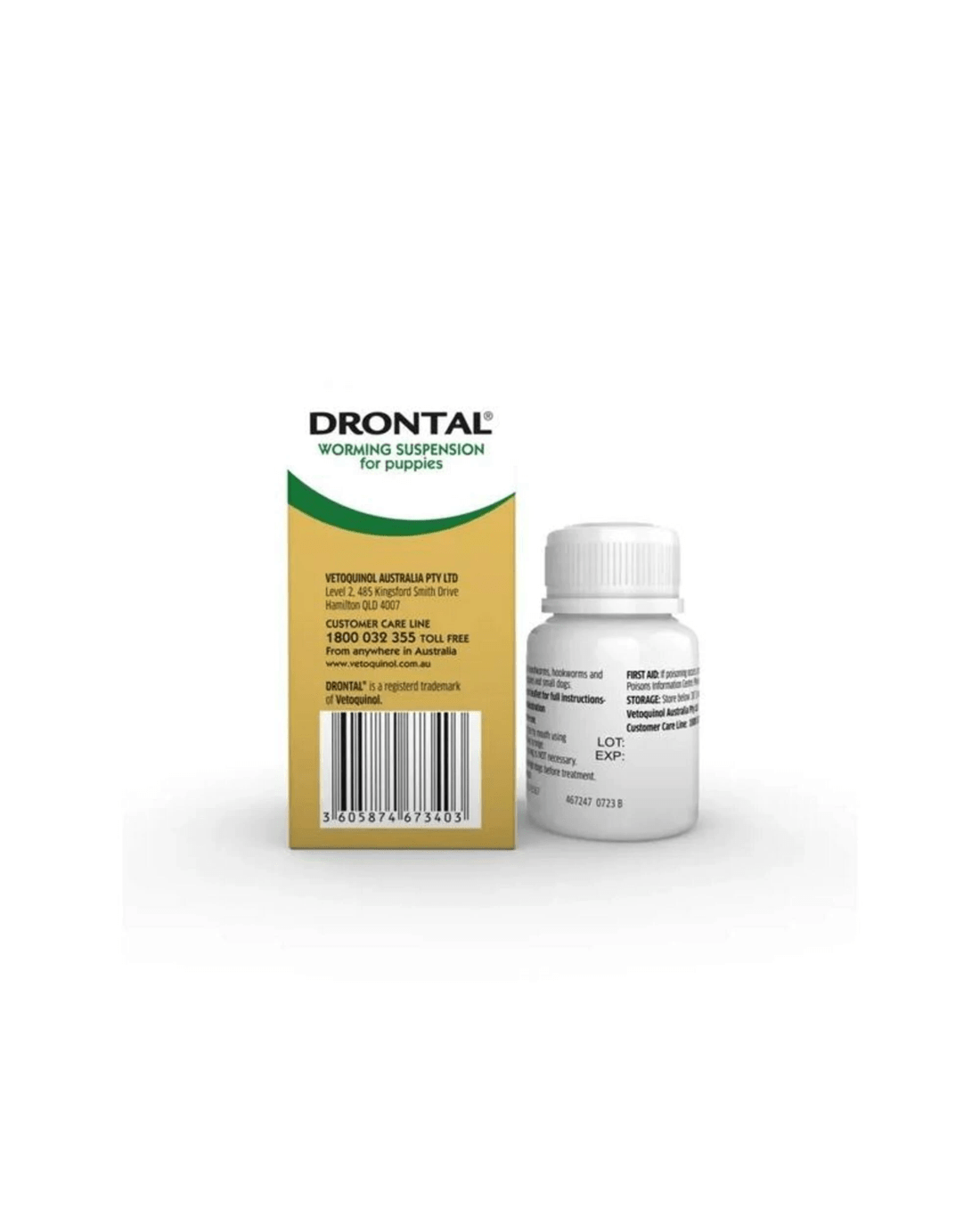 Drontal Puppy Worming Suspension is a liquid worming suspension for the control of roundworm, hookworm and whipworms in puppies and small dogs.