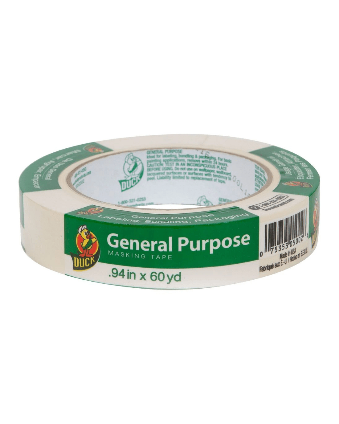 Duck General Purpose Masking Tape is ideal for non-painting applications such as labelling, bundling, mounting and light packing. It's strongly adhesive and can be removed cleanly within one day of application for your convenience.
