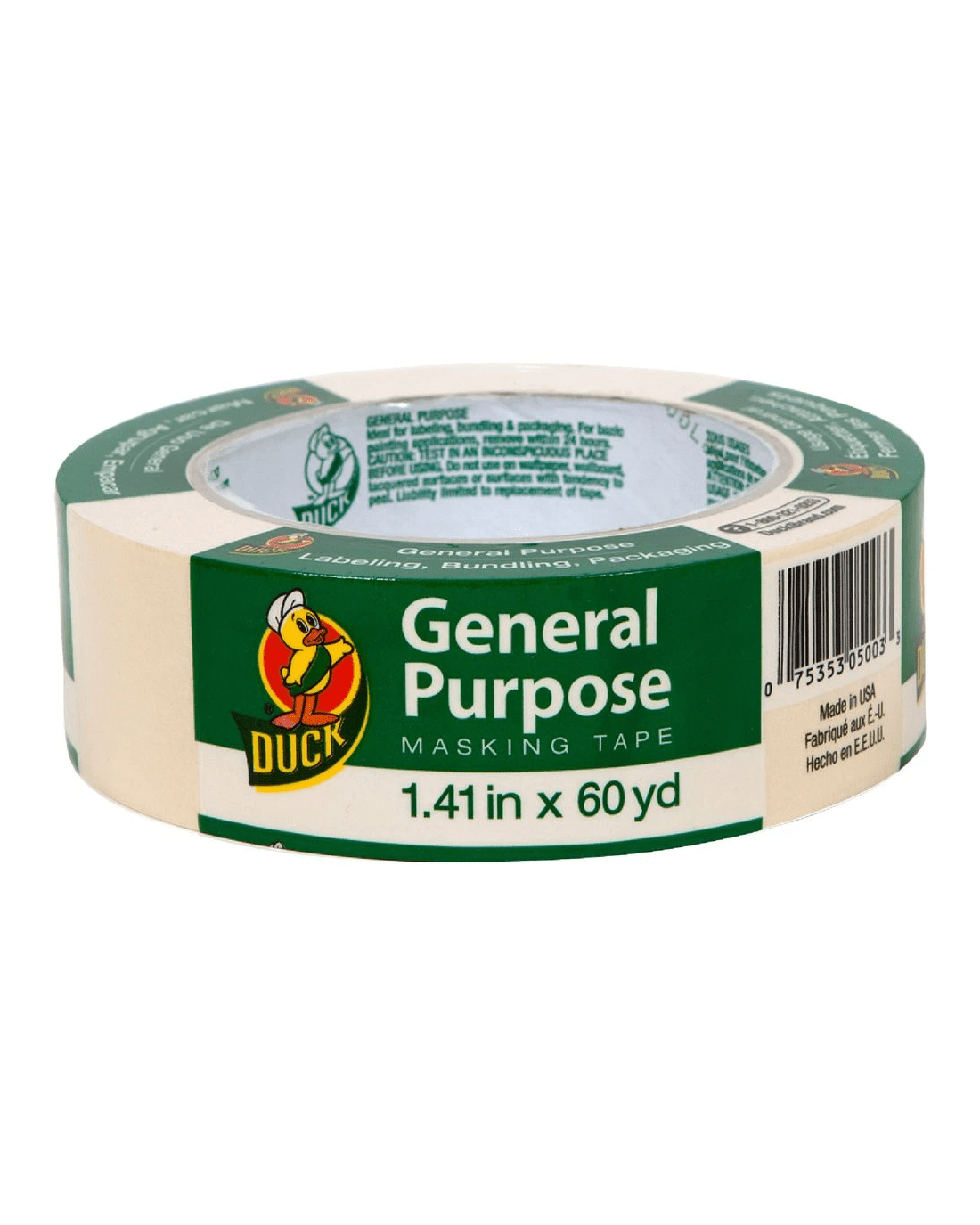 Duck General Purpose Masking Tape is ideal for non-painting applications such as labelling, bundling, mounting and light packing. It's strongly adhesive and can be removed cleanly within one day of application for your convenience.