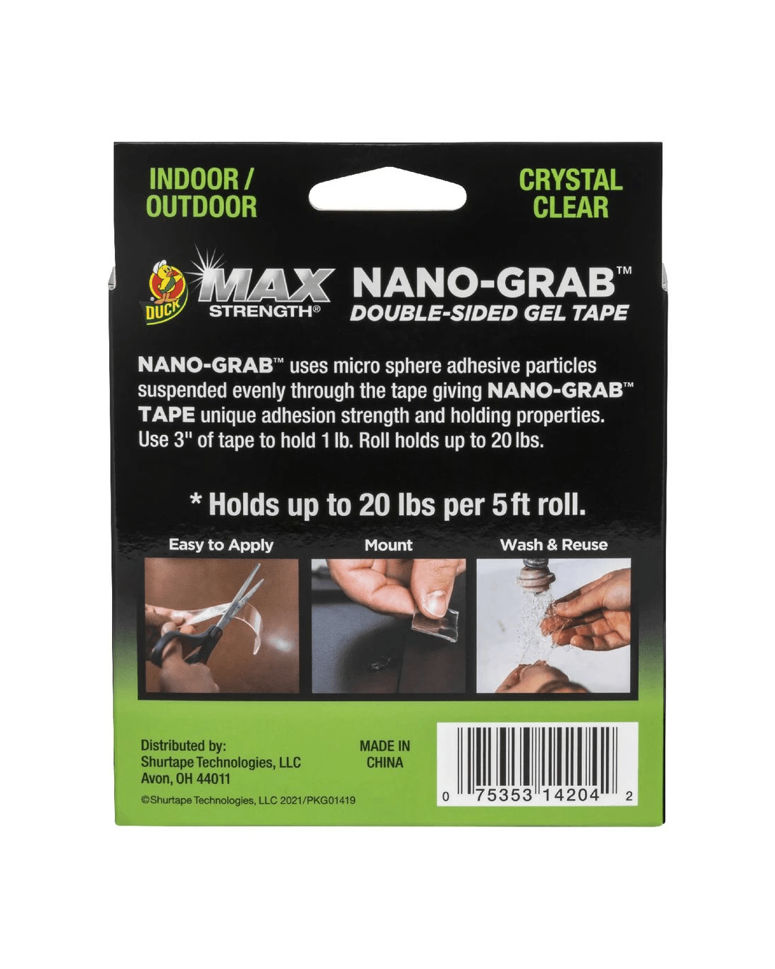This Duck Nano Grab Tape is a double-sided tape gel ideal for permanent and temporary mounting, quick fixes and DIY projects around the home and office. It features a premium and durable construction, with micro sphere adhesion particles that are suspended evenly on the tape for long lasting adhesion and extreme holding power. This tape has a crystal clear appearance for discrete repairs and finishes and is suitable for use both indoors and outside.