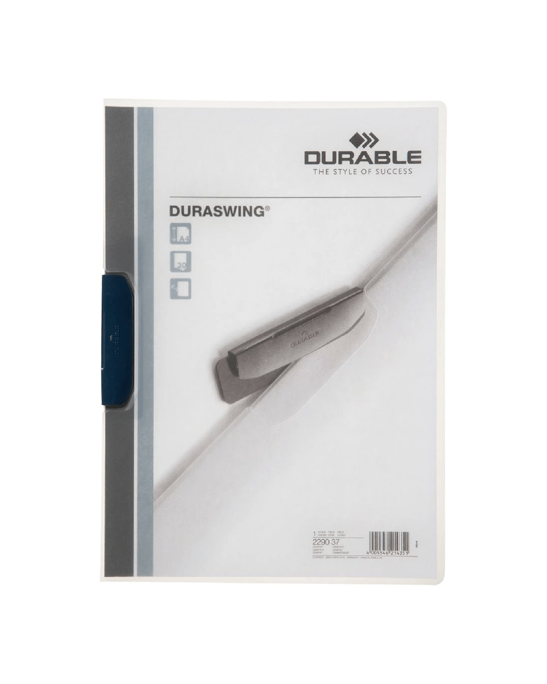 This Durable Duraswing File allows you to present your documents professionally and keep them protected when you're on the go. The file uses a pivoting plastic clip system to secure the papers inside so you don't have to worry about punching holes in your pages.