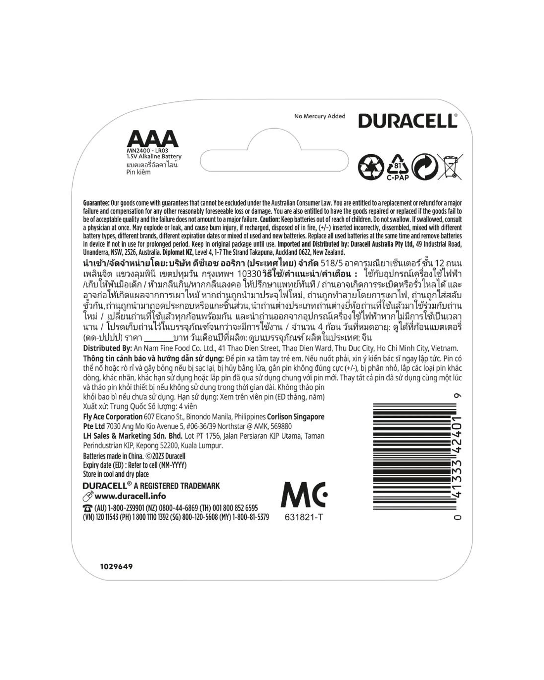 - AAA Alkaline battery