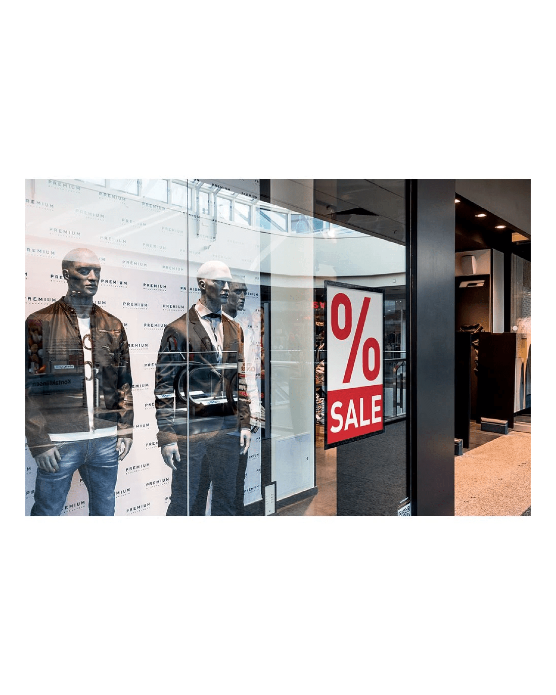 - It's suitable for displaying information on walls, glass surfaces and in windows.