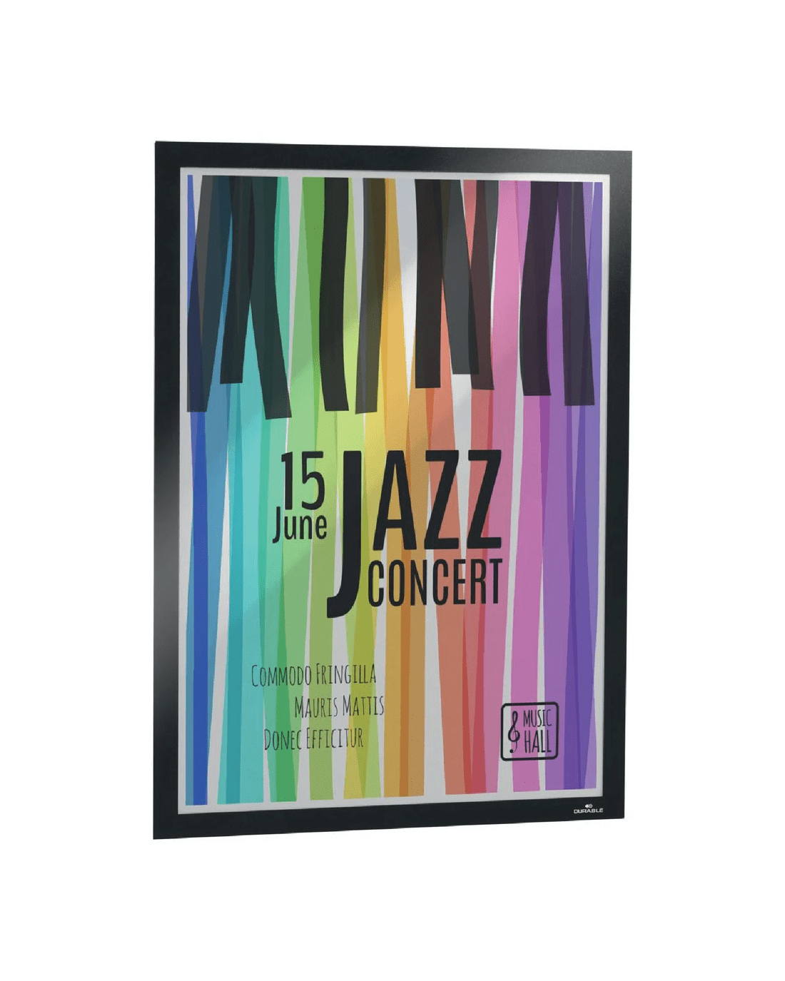 This Duraframe Poster info-frame is suitable for displaying information on walls, glass surfaces and in windows. It features easy replacement of posters via a hinged magnetic frame and is UV-stabilised for up to 2 years, as well as heat-stable. Plus, it's even readable on both sides of the glass.