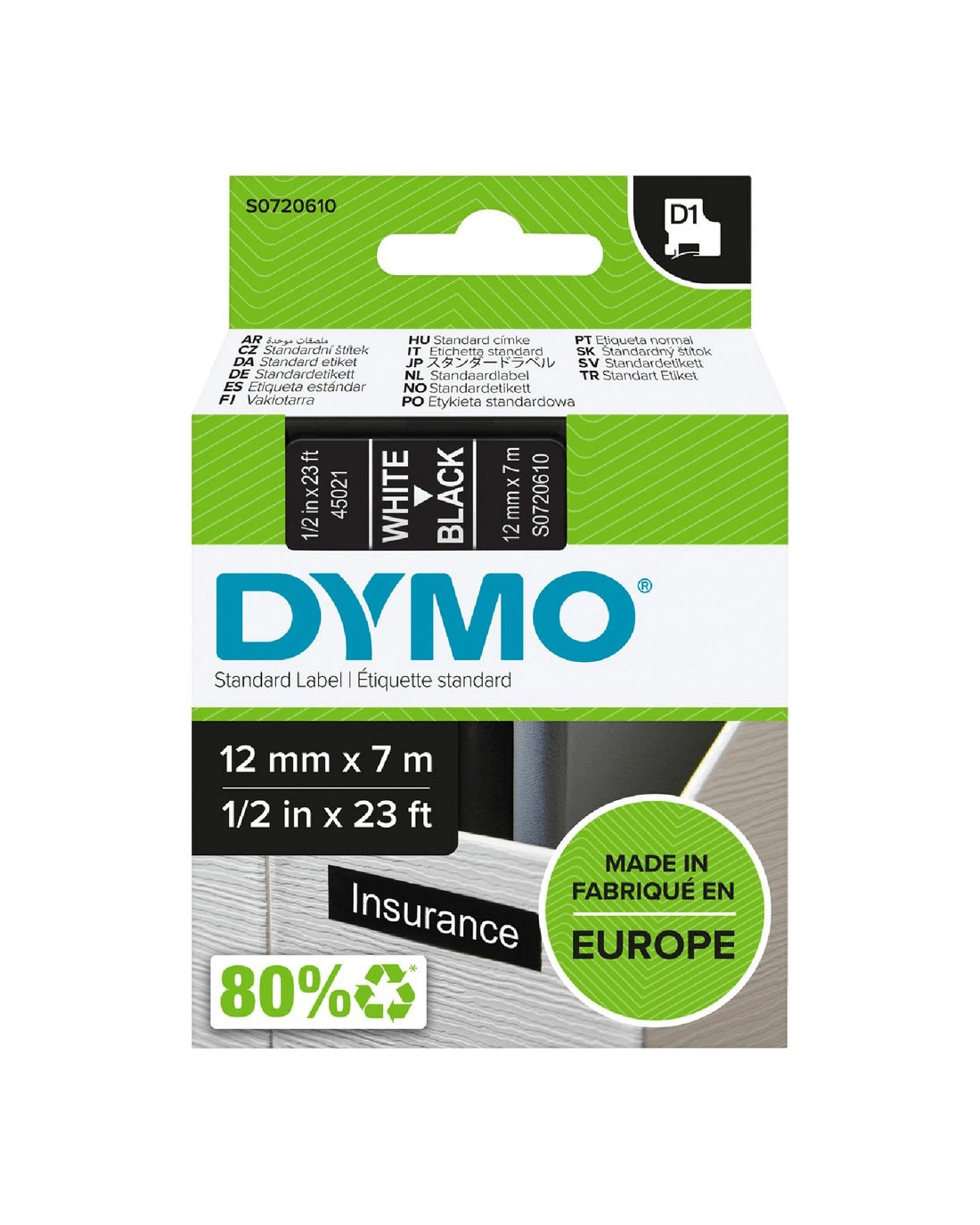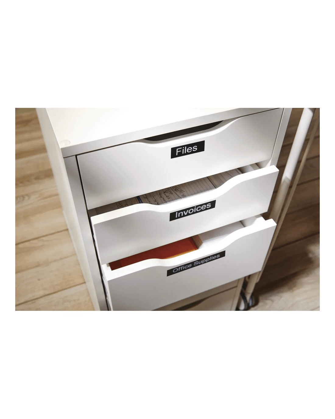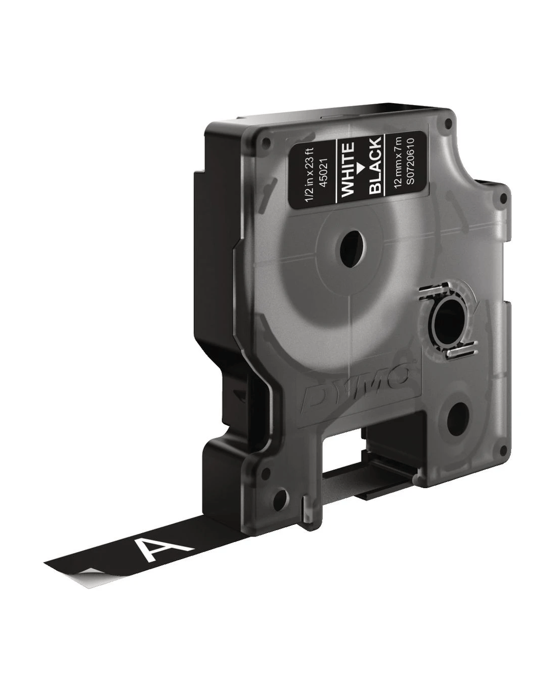 Sold by OfficeworksDYMO D1 Label Tape 12mm x 7m White on Black