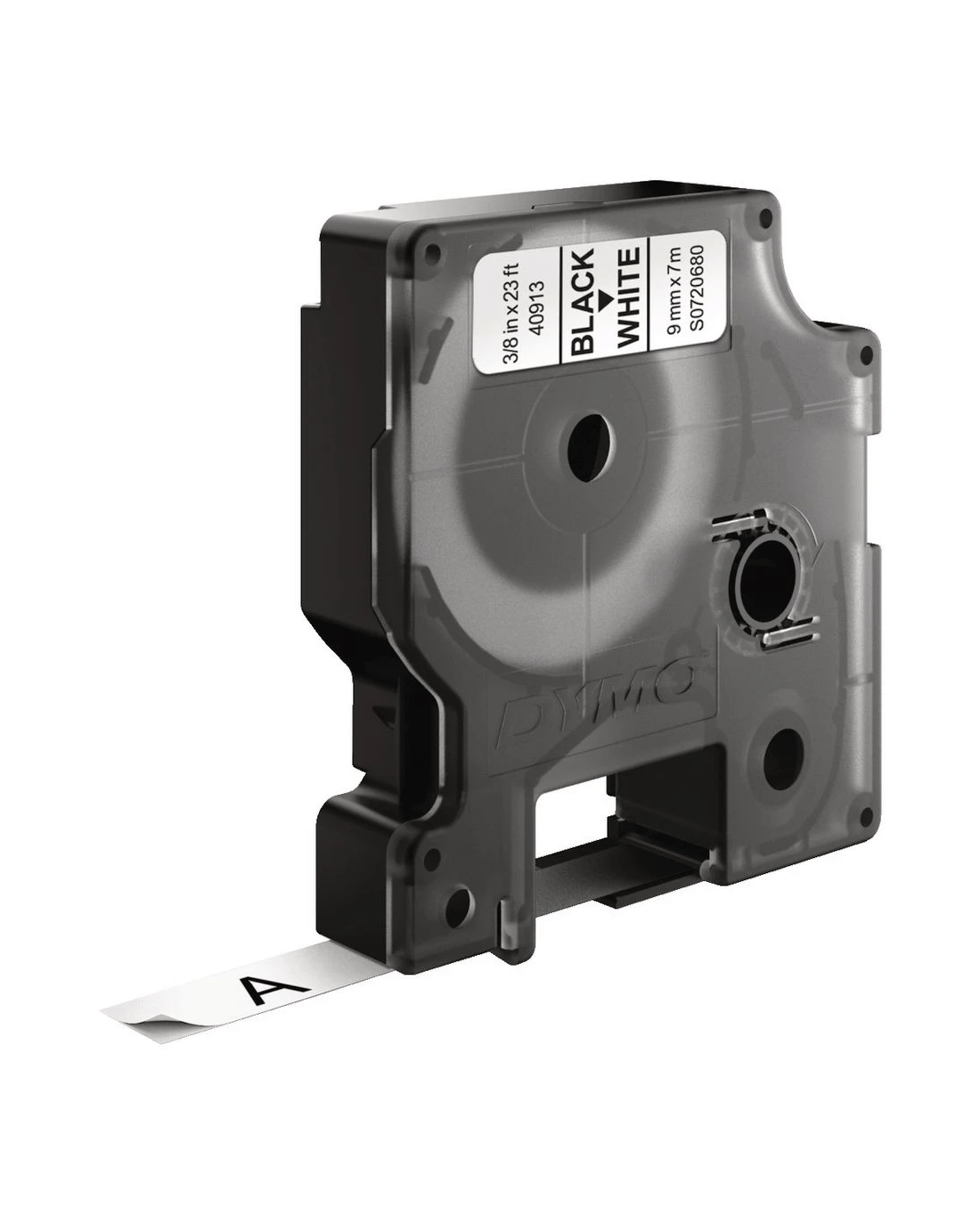 - This tape allows for printing of black text on a white background.