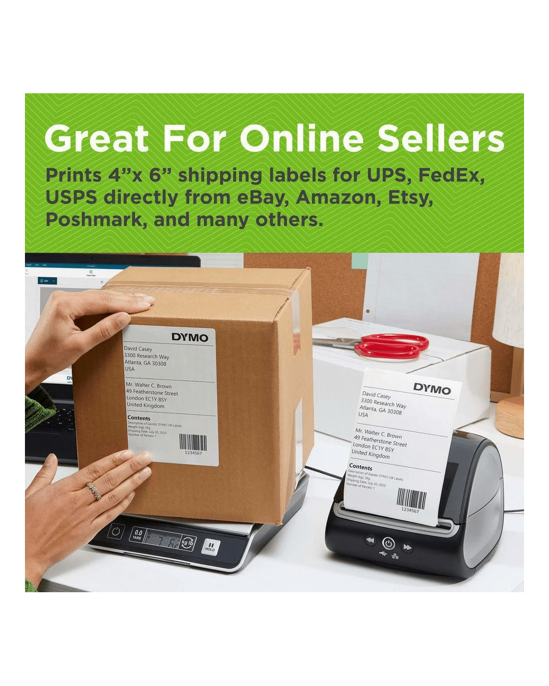 The new and improved DYMO LabelWriter 5XL can be connected to your PC or Mac computer for printing large 4” x 6” shipping labels directly from eBay, Amazon, Etsy, Shopify and many others. This printer is an efficient and cost effective solution to produce warehouse labels, barcodes and ID labels, bulk mailing labels, and other large-format label types with ease - meeting all of your professional labelling requirements. This Value Pack includes 3 x Label Rolls to help kick-start your printing.