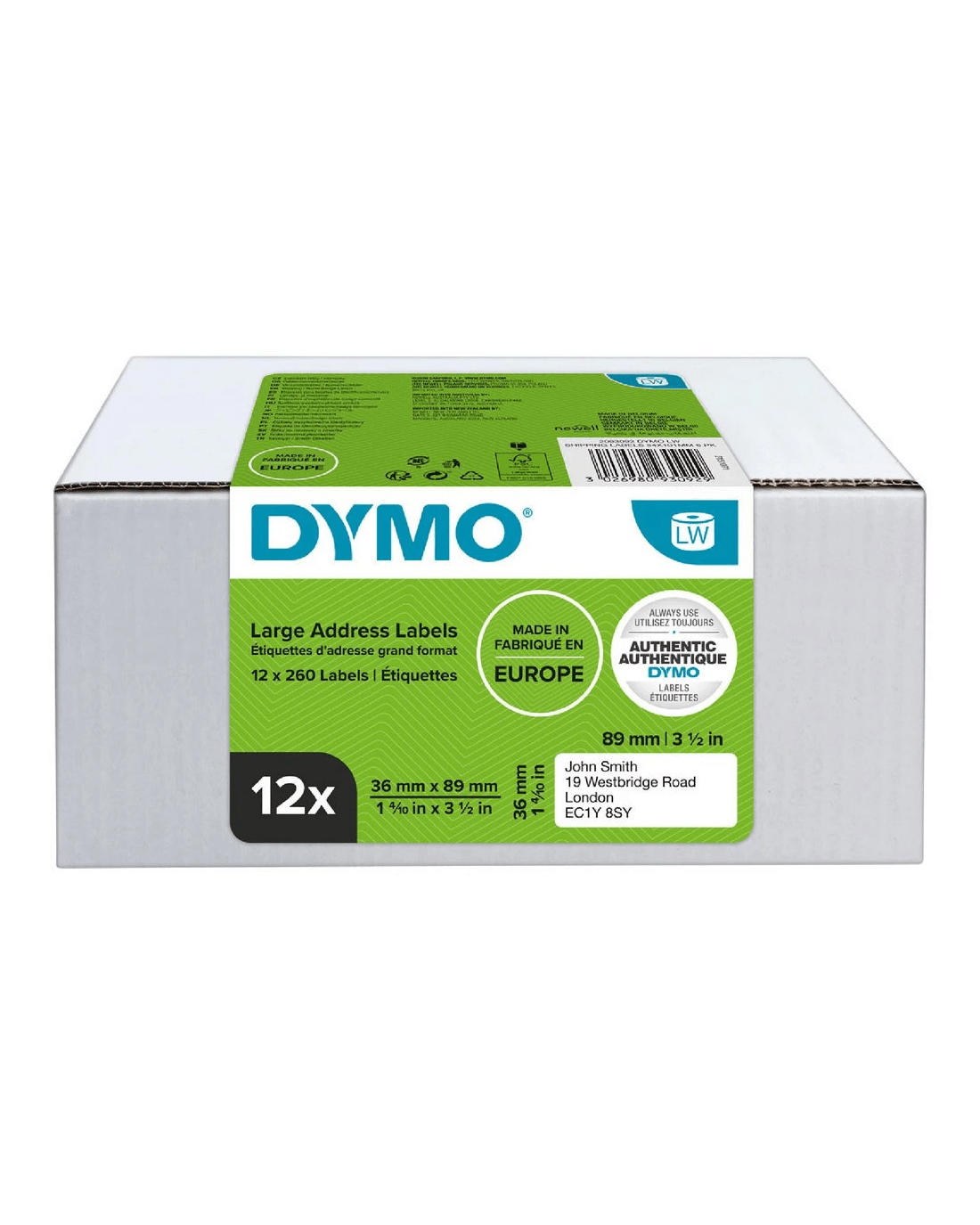 Sold by OfficeworksDymo LabelWriter Large Address Labels 36 x 89mm White 12 Pack