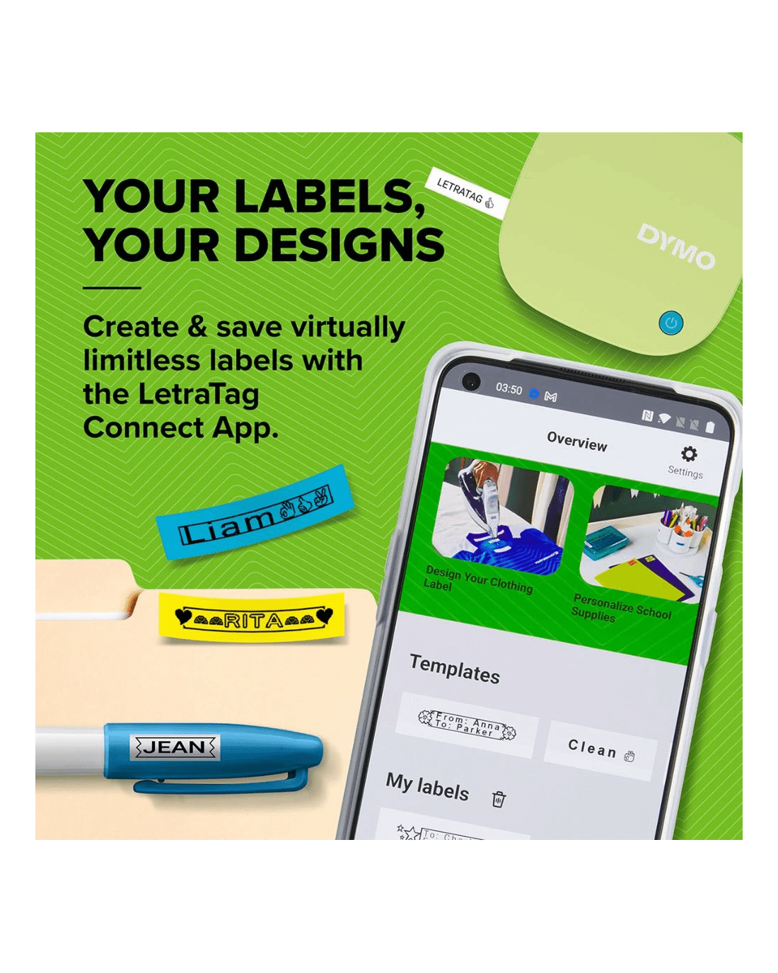 - Use the intuitive new LetraTag Connect app to access 8 pre-saved templates for even easier label creation, along with tips on organization that will save you time and hassle when you need to make your home, or home office a more organized space.