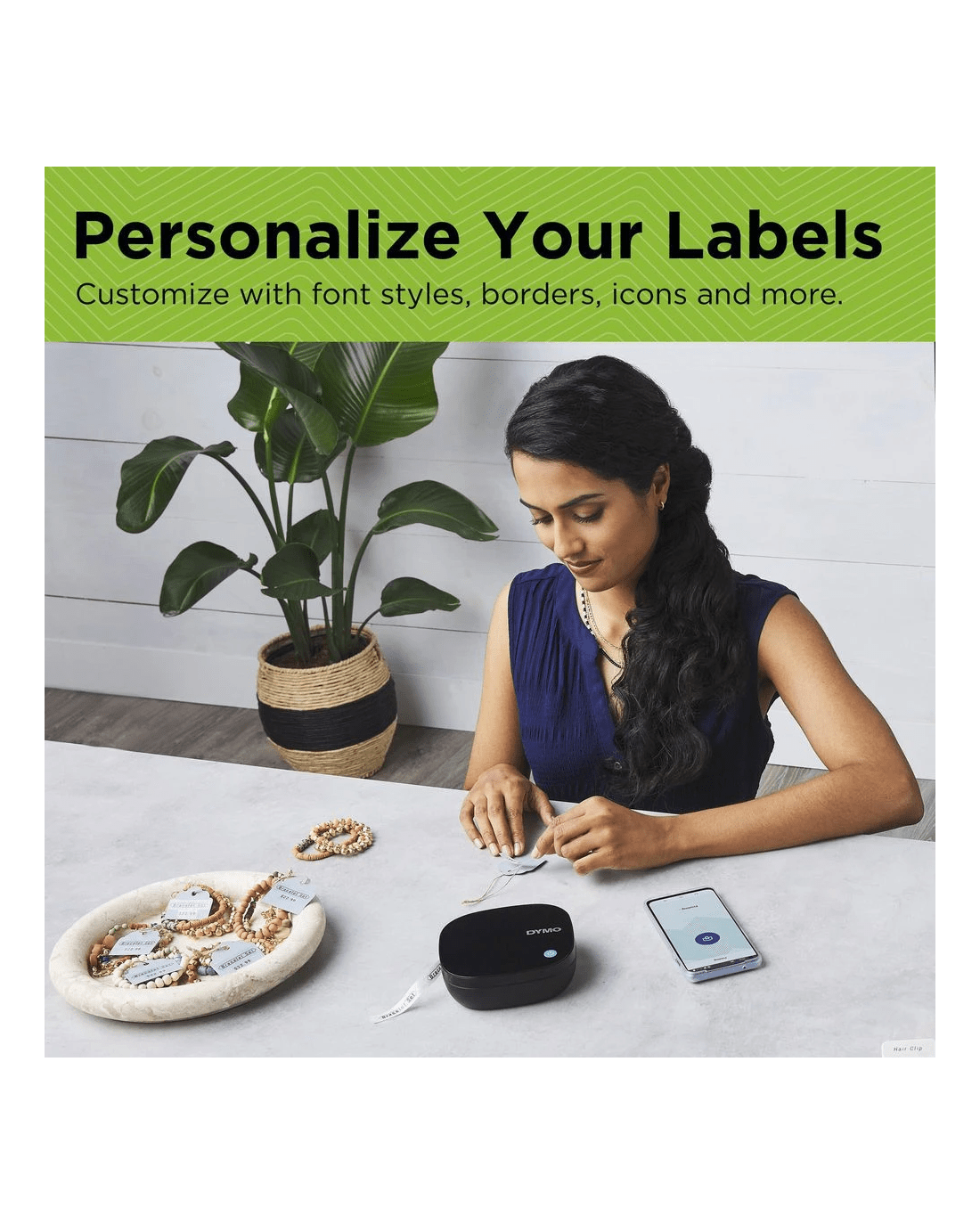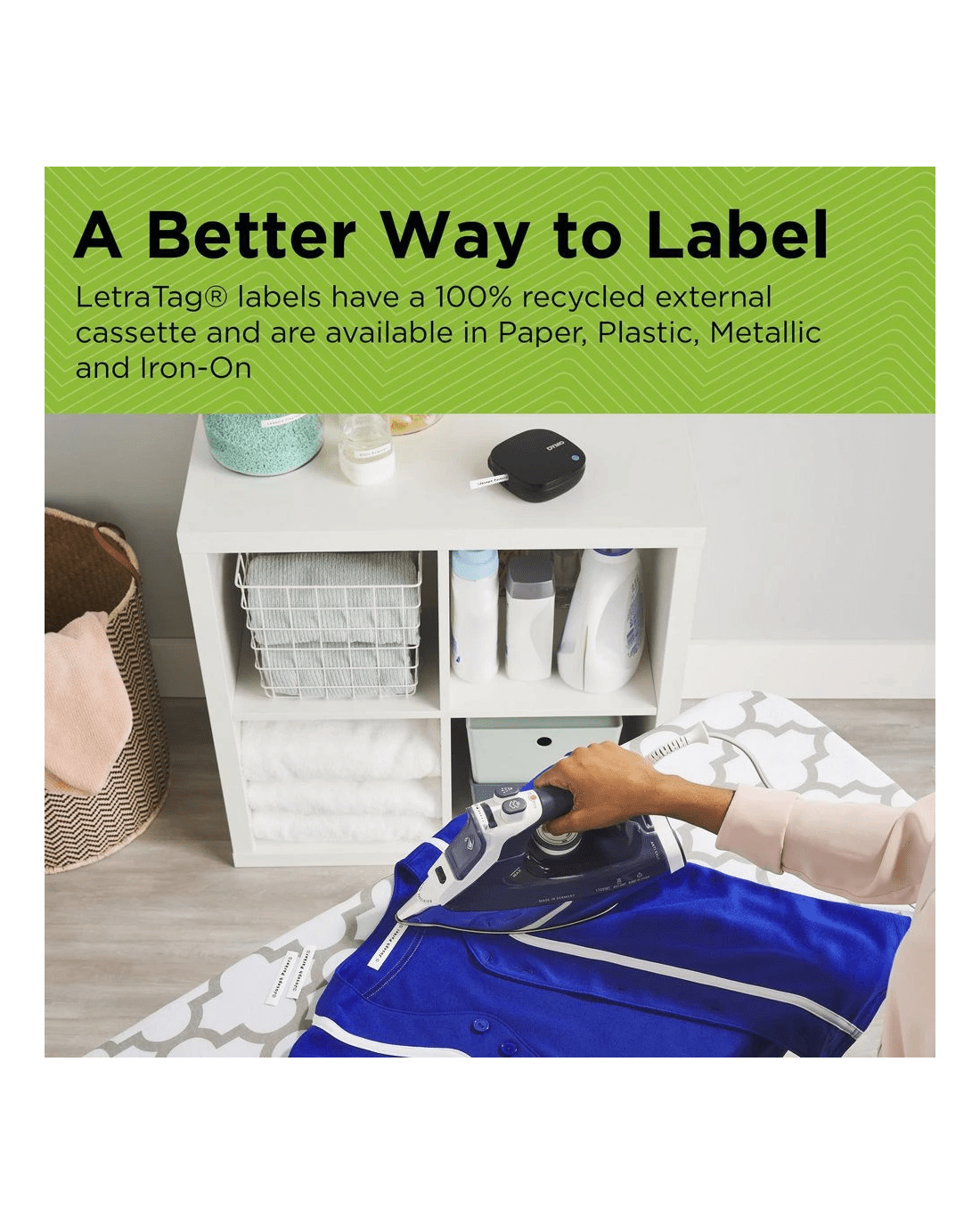 - Works with our authentic DYMO® LetraTag® labels with 100% recycled external cassettes, available in a wide variety of colors, and types.